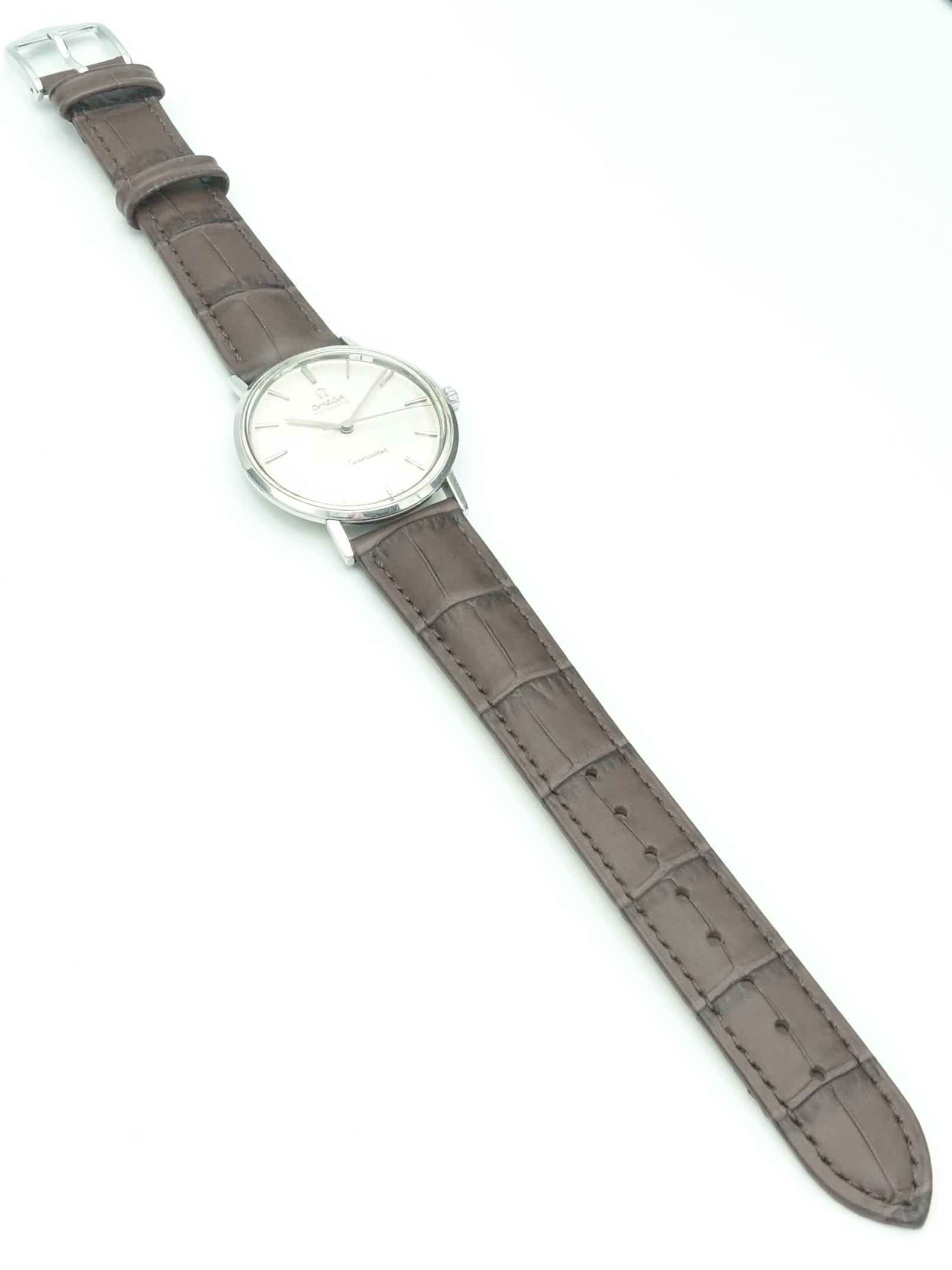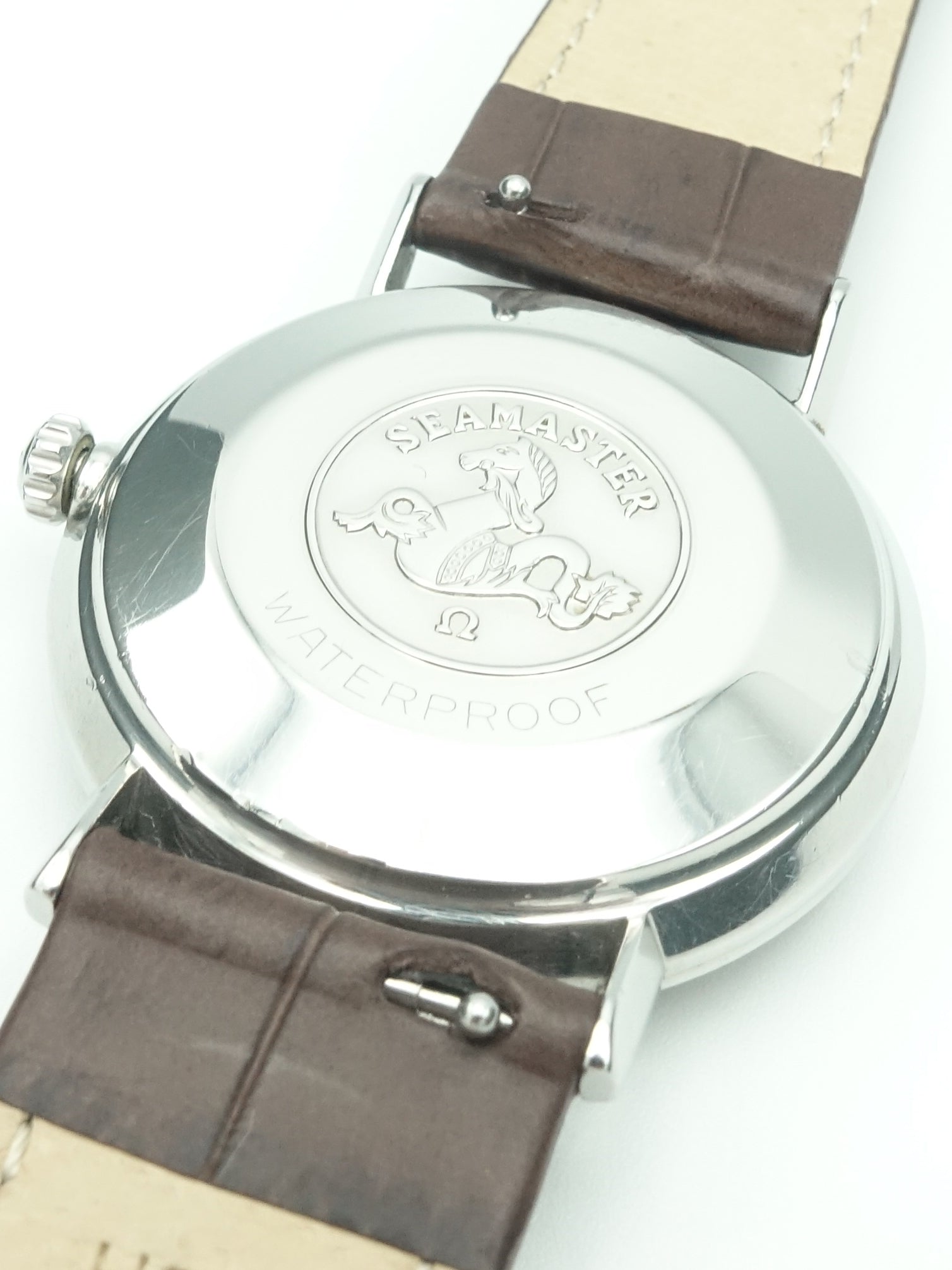 Powered by the robust Omega Calibre 552 automatic movement, this Seamaster offers smooth and reliable timekeeping while maintaining its vintage soul. The watch is fitted on a high-quality brown leather strap, perfectly complementing the sophistication of the dial and enhancing the classic look.