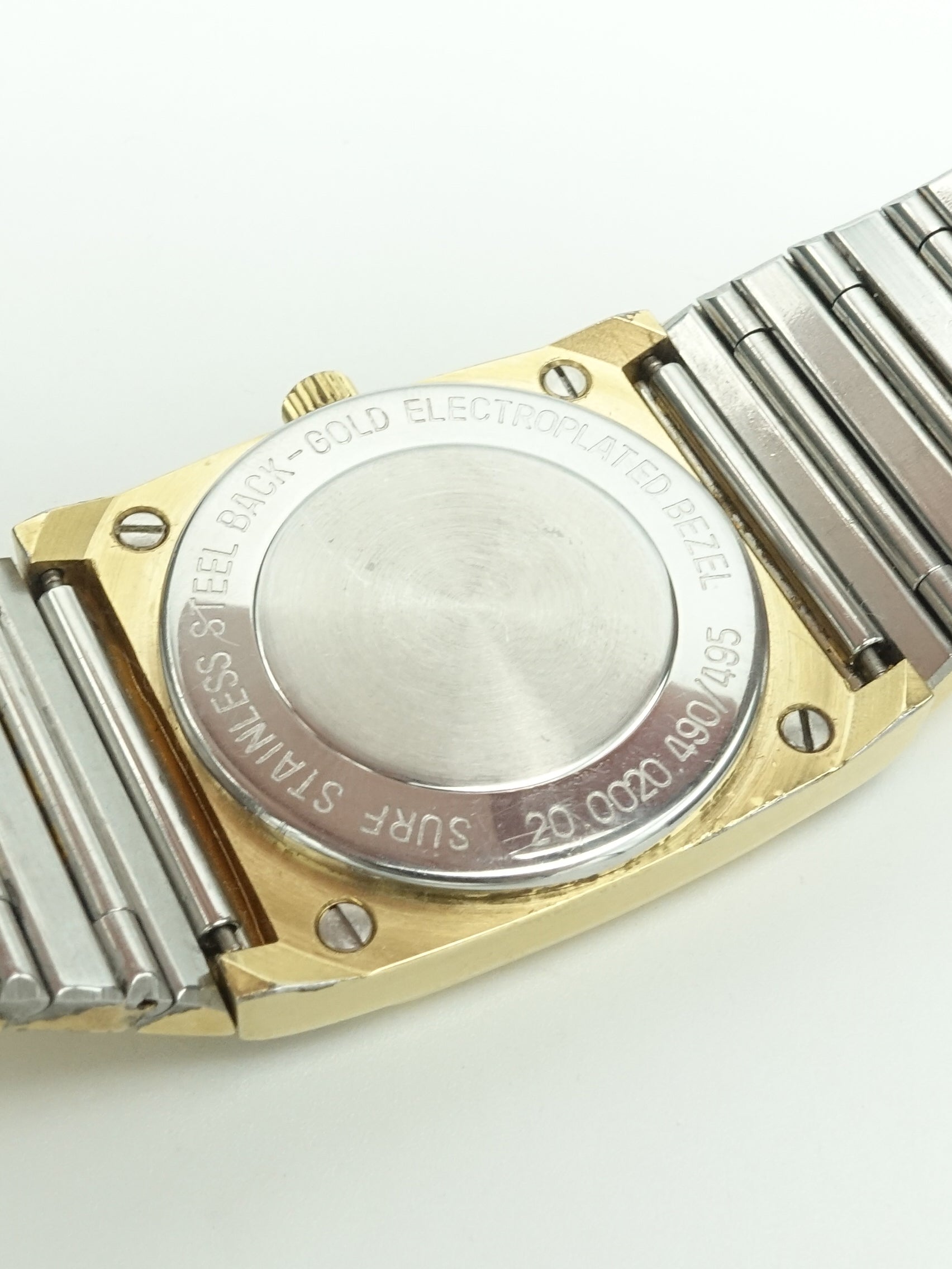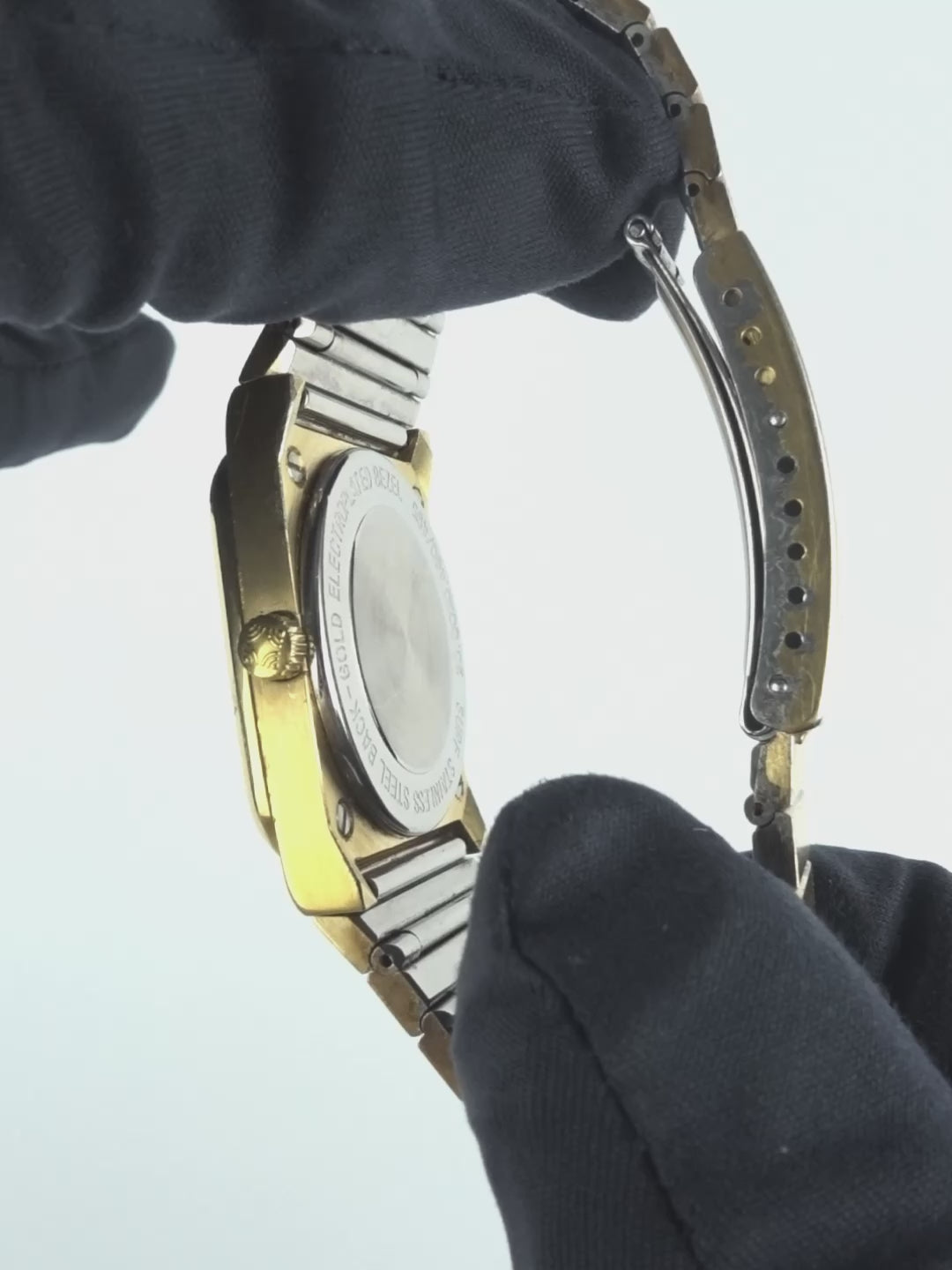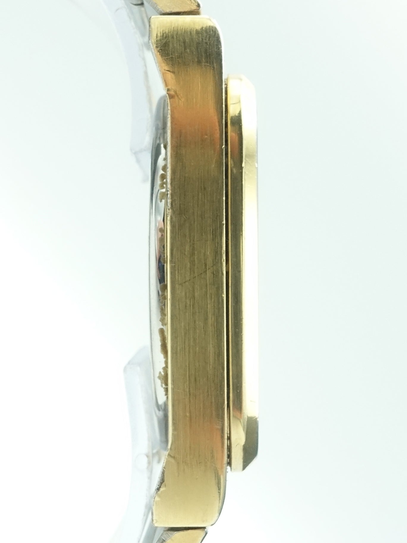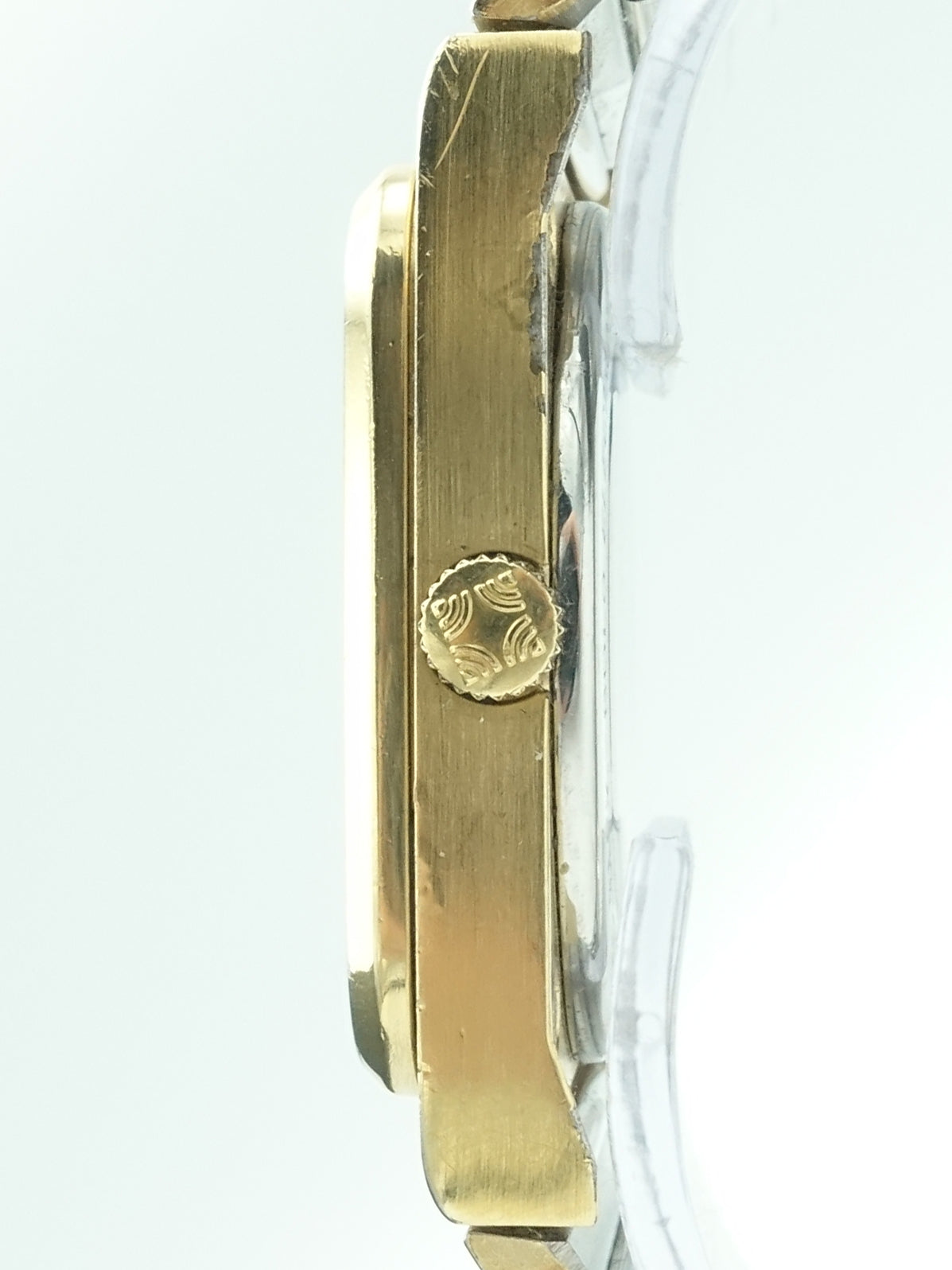The 1975 Zenith Port Royal is a bold example of mid 1970s luxury watch design, defined by its strong integrated case and bracelet architecture. Finished in gold, the squared case flows seamlessly into the matching bracelet, creating a cohesive and confident silhouette that is instantly recognisable as a product of its era. The overall design reflects Zenith’s embrace of modern, angular forms during this period.
