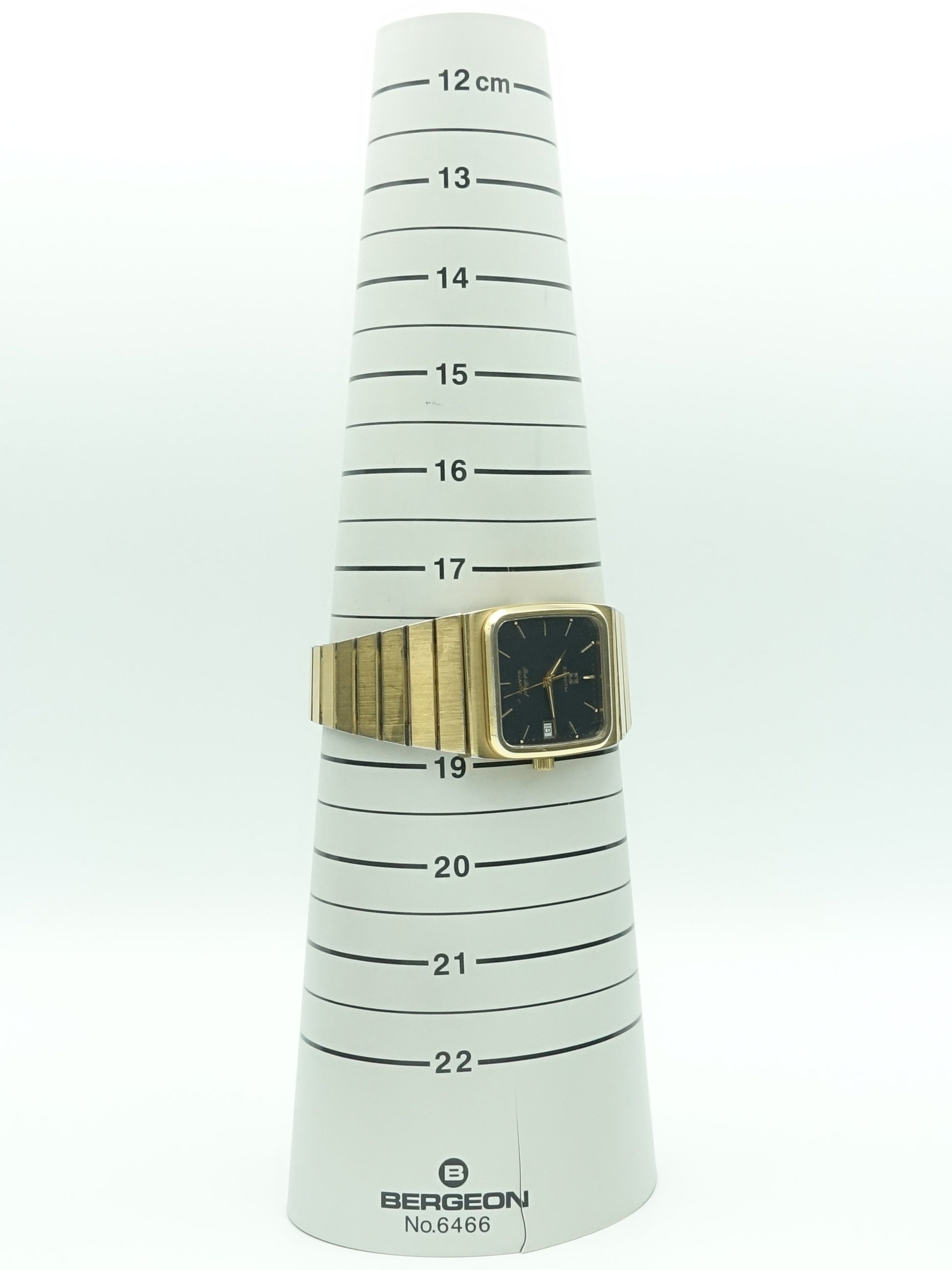 Powering the watch is a Zenith quartz movement, offering the accuracy and reliability that defined the quartz era of the 1970s. With its integrated gold bracelet and sharp black dial, the 1975 Zenith Port Royal remains a distinctive and stylish example of vintage Zenith design, appealing to collectors drawn to strong period character and refined simplicity.
