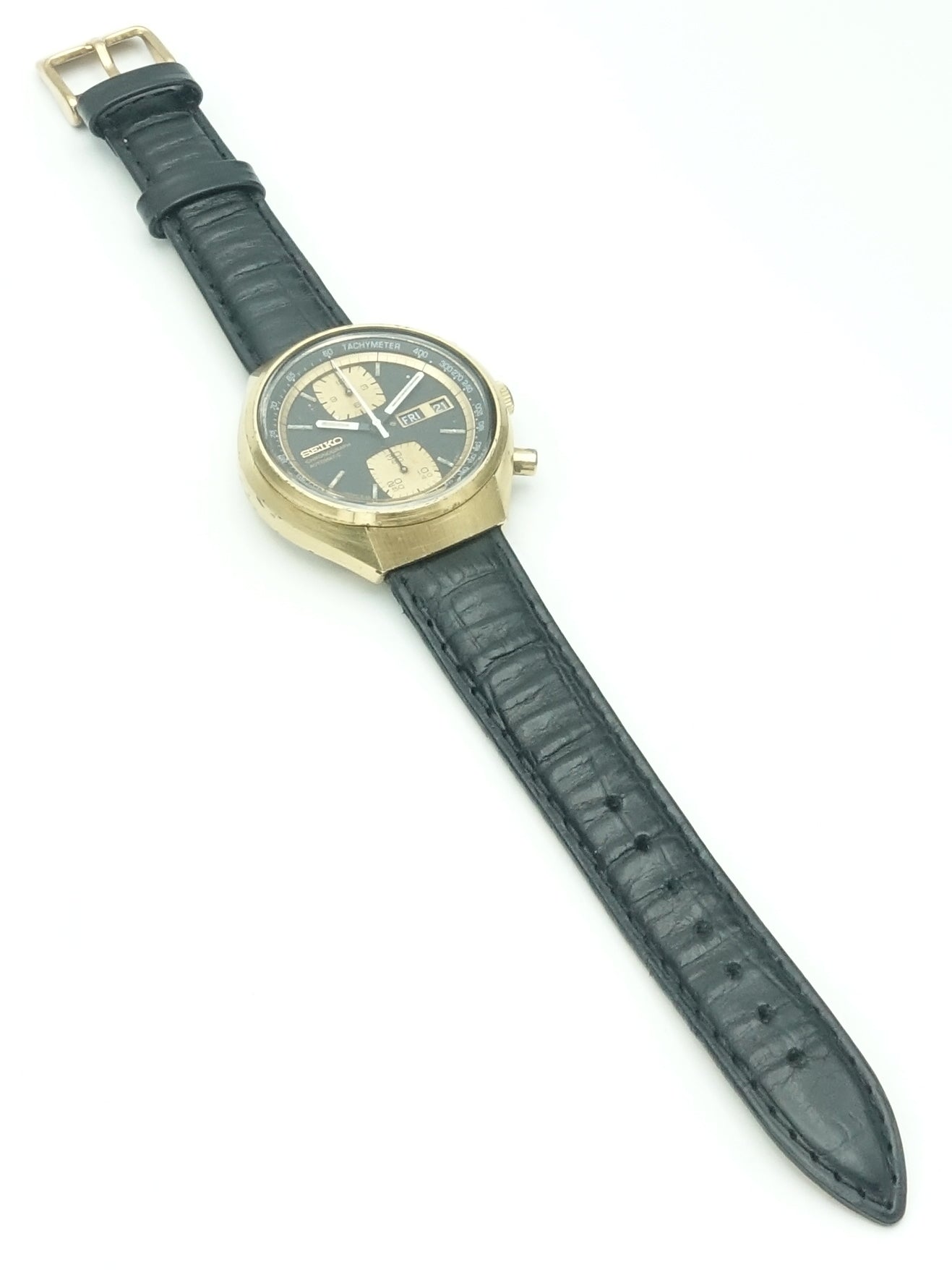Introducing the 1976 Seiko Chronograph Ref. 6138-8030, affectionately known as the “John Player Special” due to its distinctive black and gold colour scheme reminiscent of the Lotus Formula 1 cars sponsored by John Player Tobacco in the 1970s.