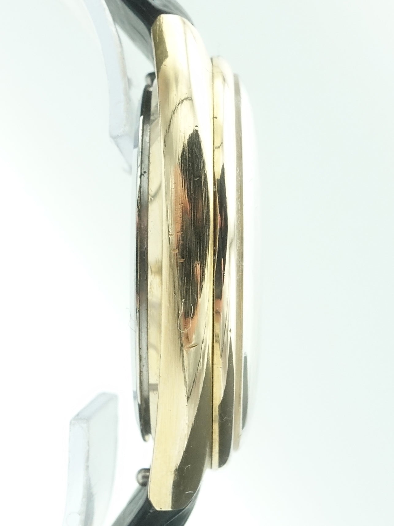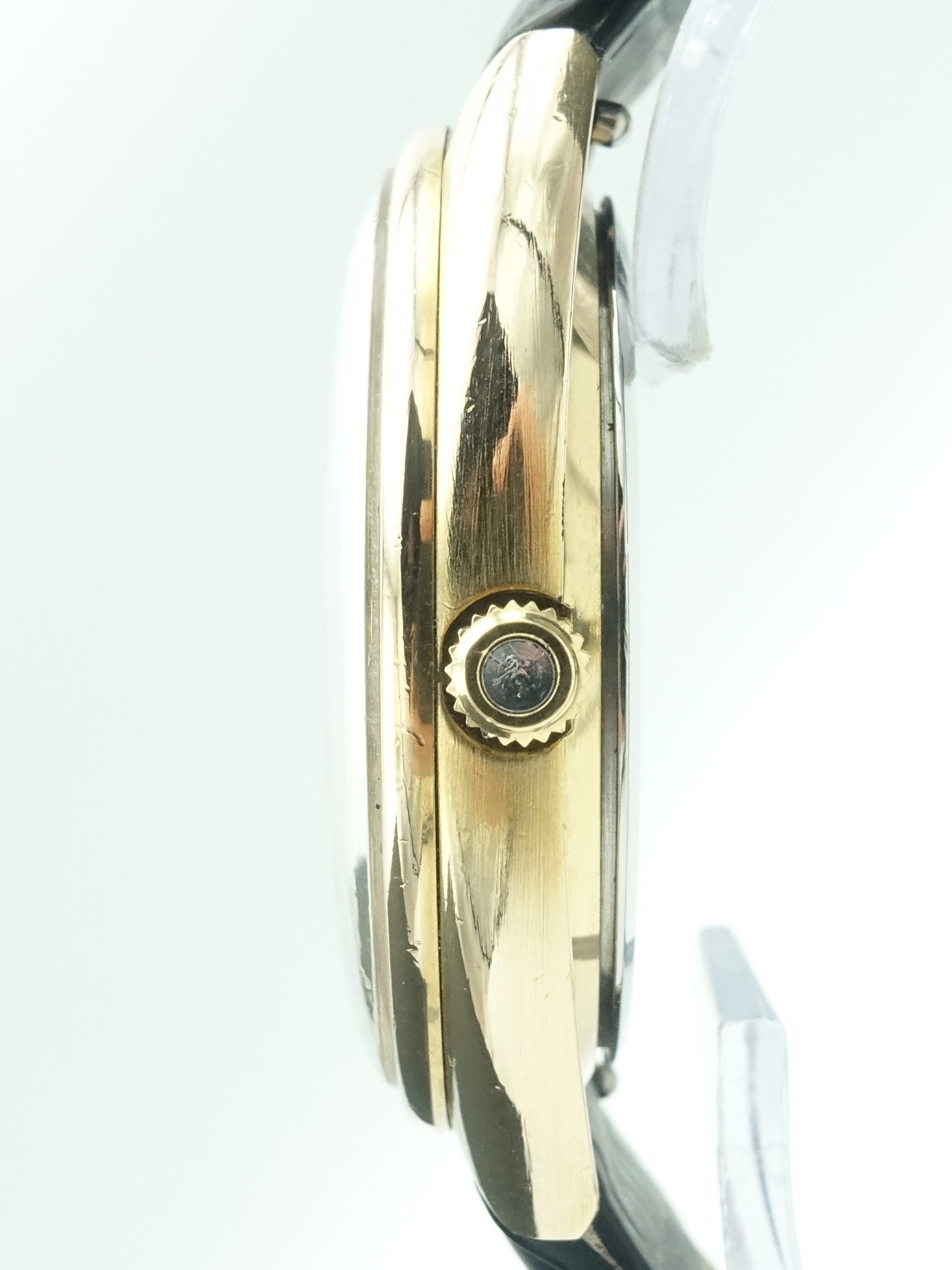 The watch is complemented by a high-quality leather strap, providing both comfort and a cohesive aesthetic. Its well-preserved condition, considering its age, makes it a remarkable find for vintage watch enthusiasts.