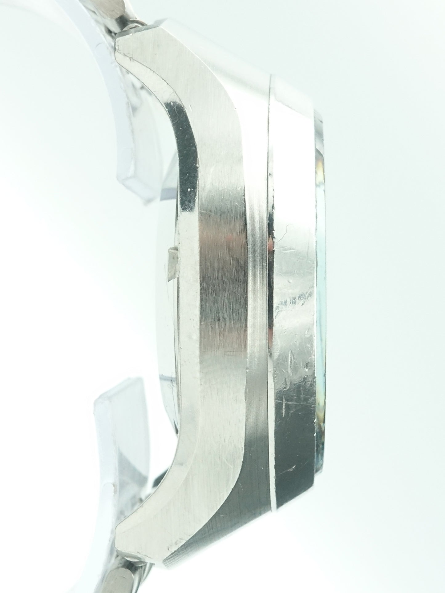The dial layout is clean, functional, and unmistakably 1970s. The crisp white background contrasts beautifully with the black numerals. Applied markers and matching hands complete the design, while the day-date display at 3 o’clock adds practical everyday usability. The overall aesthetic is sporty yet refined, making this version stand out even within the already iconic 6139 lineup.