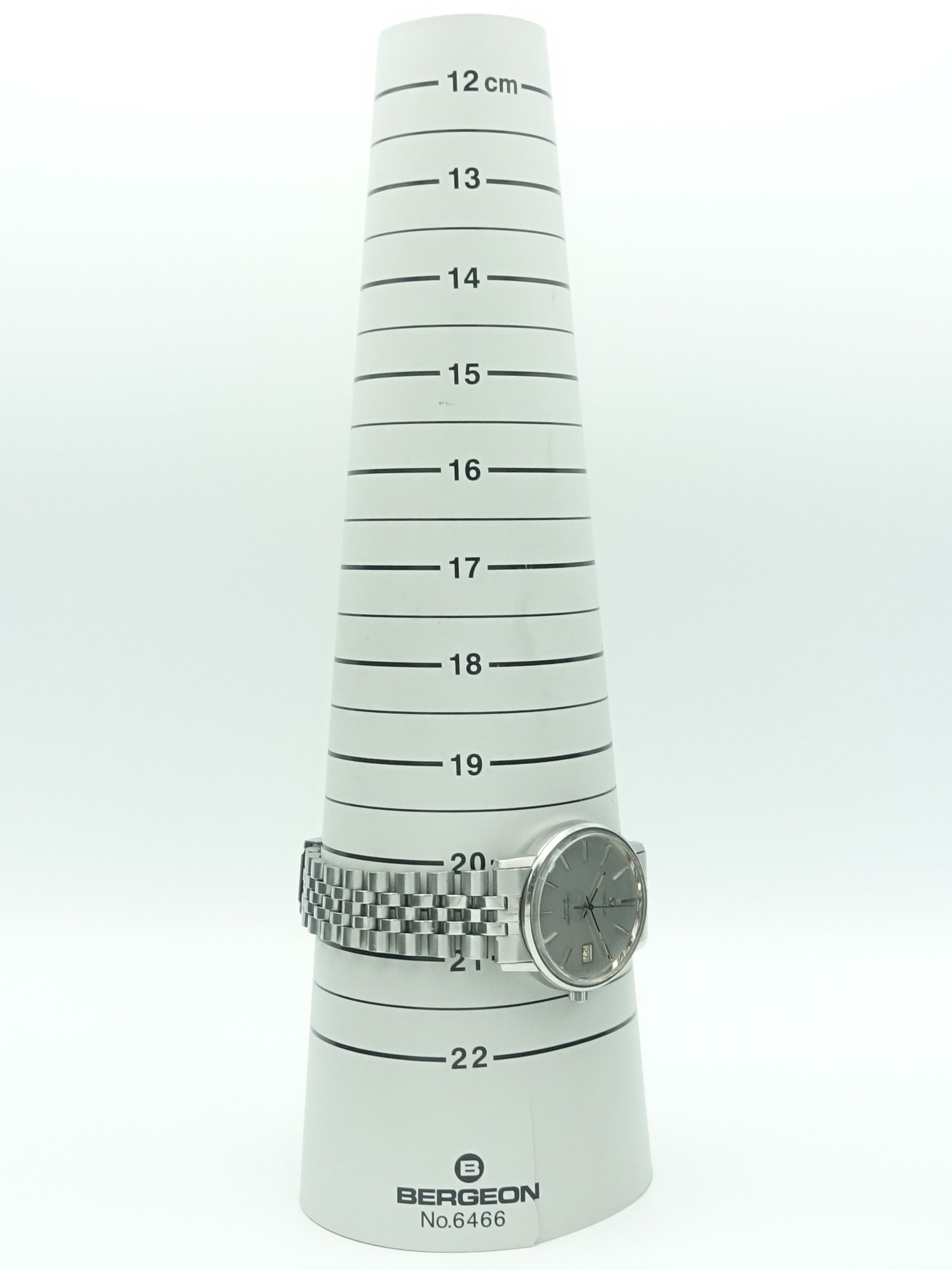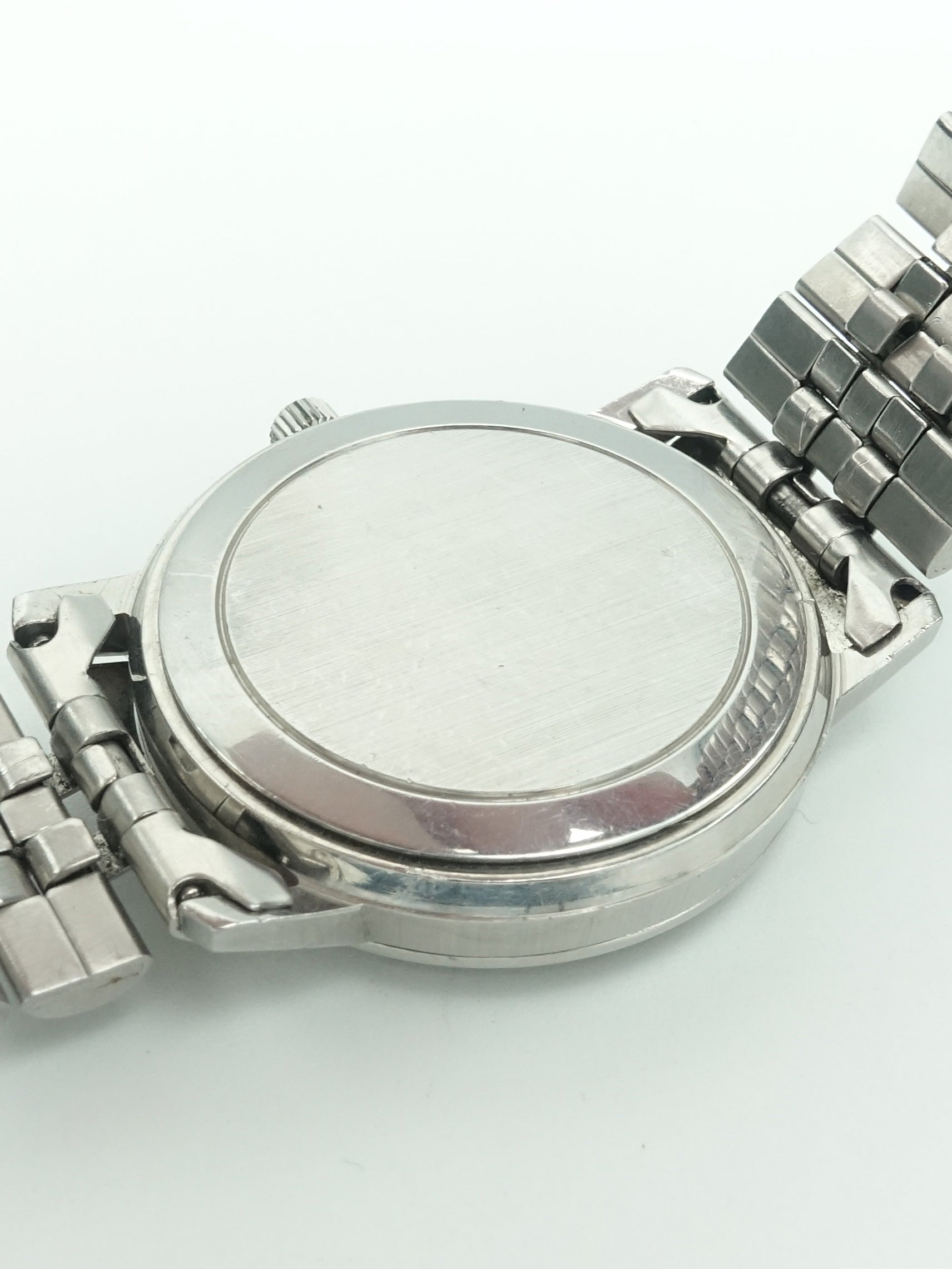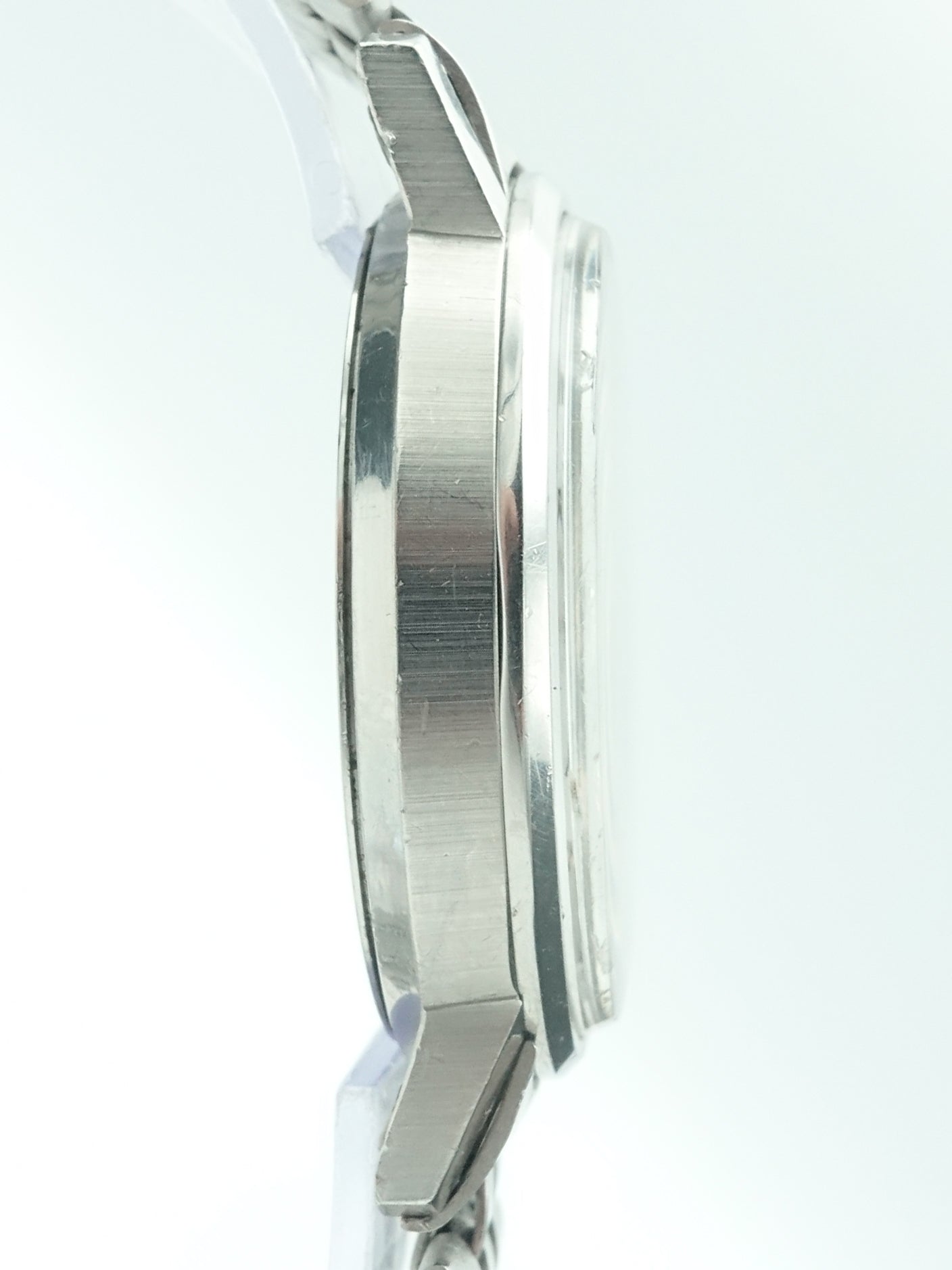 The 1978 Omega Seamaster Quartz Ref. 196.0079 captures the clean, modern lines that defined Omega’s late-1970s design language. Its 36mm stainless steel case features sharp edges and a low profile, offering a bold yet refined wrist presence. The watch is fitted on a high-quality aftermarket jubilee-style bracelet, enhancing both comfort and visual appeal with its classic, multi-link design.