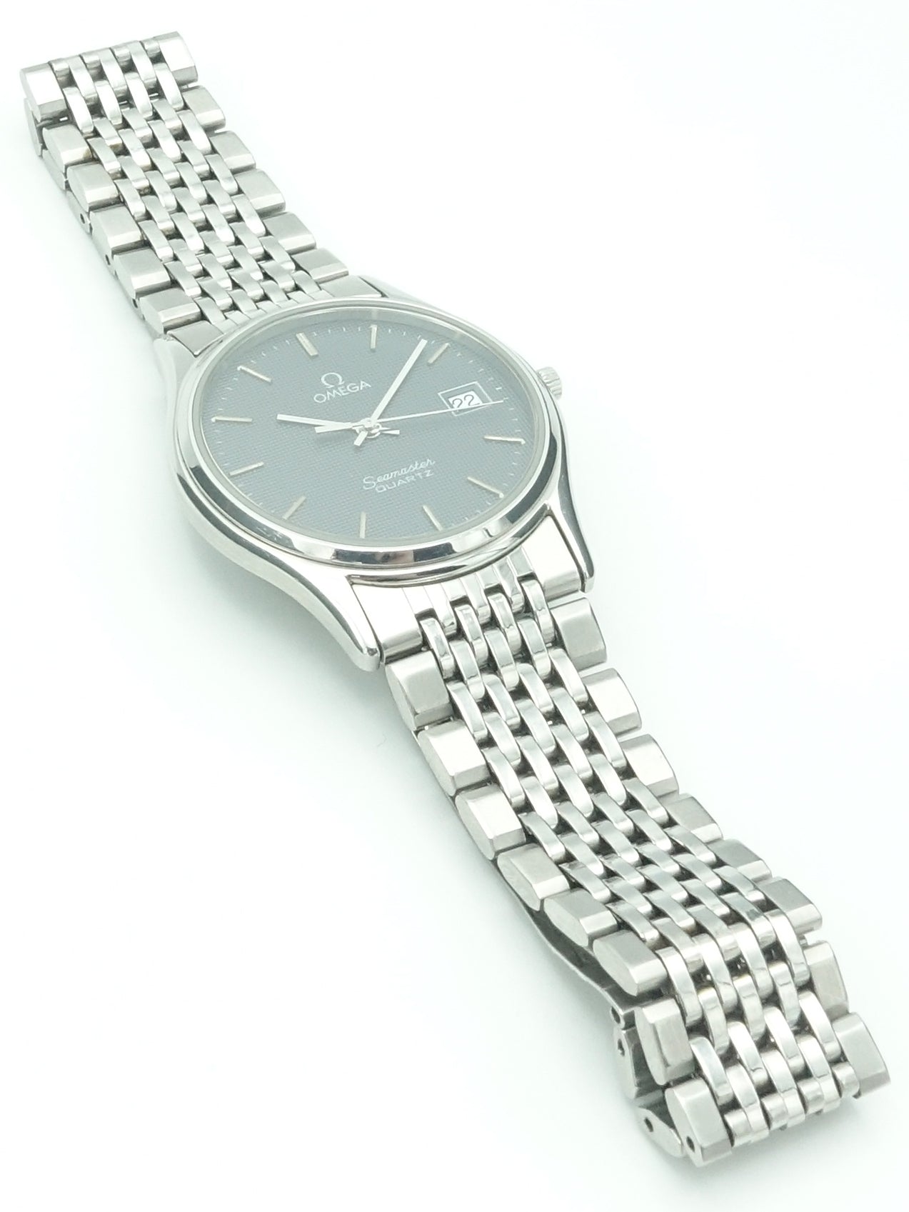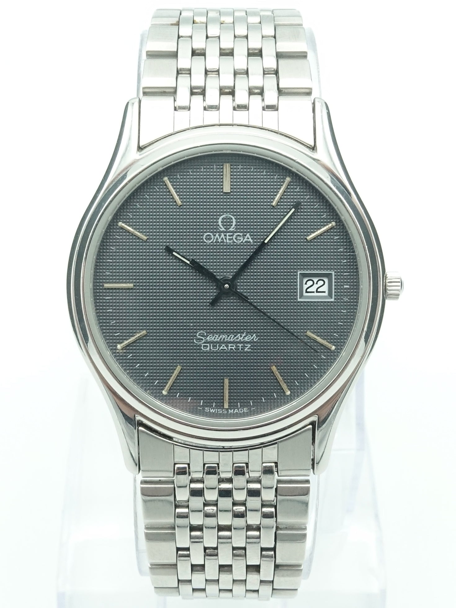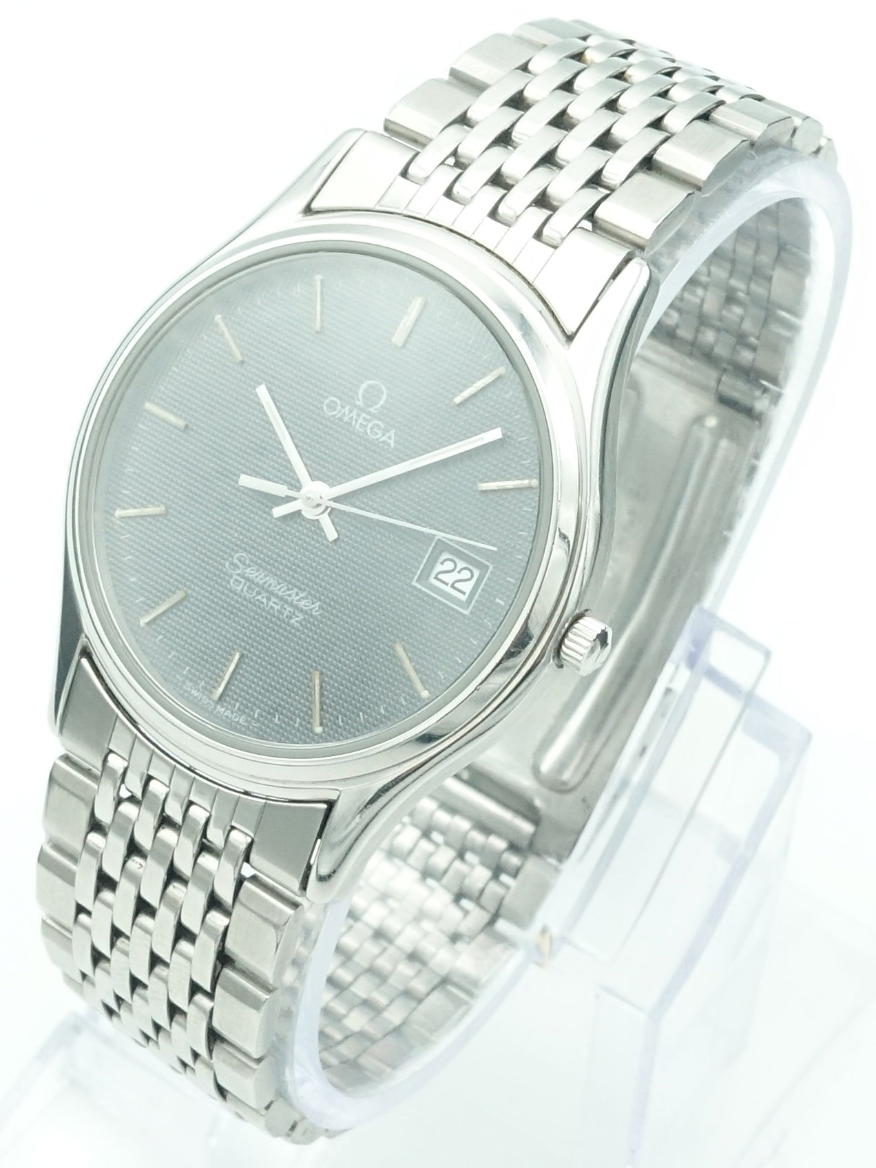Powering this timepiece is Omega’s Caliber 1430 quartz movement, renowned for its accuracy and reliability. The watch is fitted with its original stainless steel bracelet, preserving its authentic 1980s character and ensuring a comfortable fit.