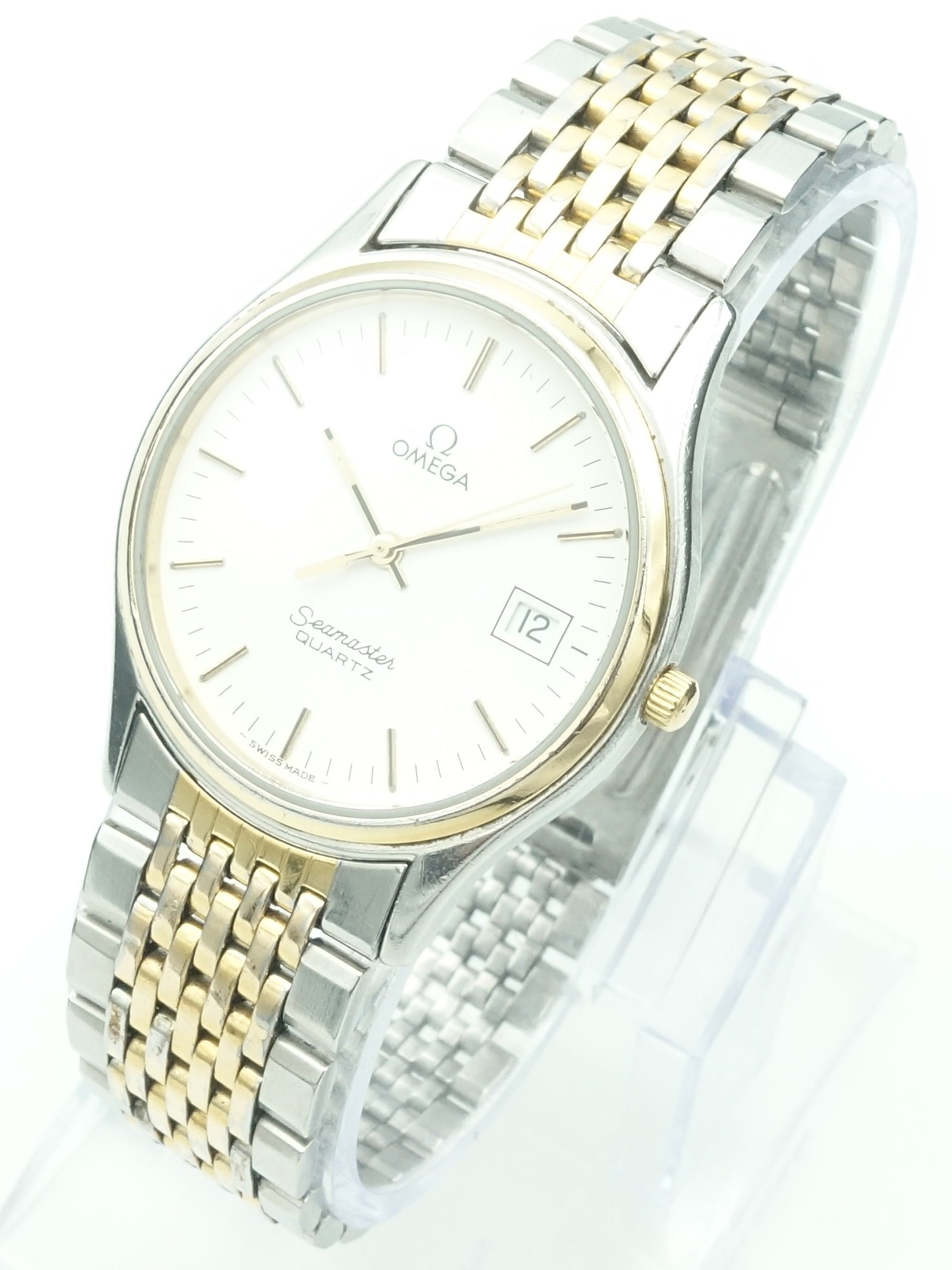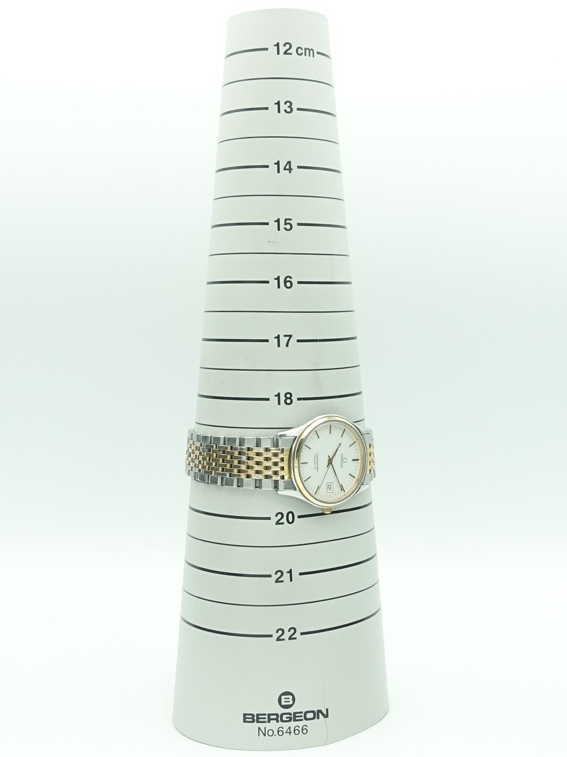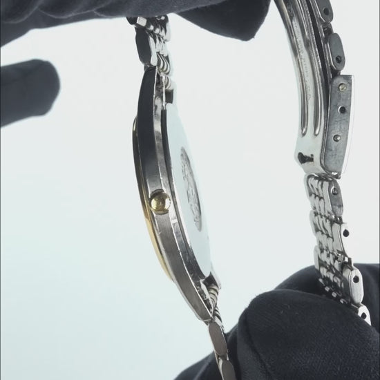 The 1982 Omega Seamaster Quartz Ref. 196.0251 stands out as a refined two tone design from Omega’s early 1980s quartz era. Its gold and stainless steel case is paired with a matching two tone bracelet, giving the watch a balanced mix of elegance and everyday versatility. The proportions follow the clean, angular aesthetic typical of this period, offering a distinctive vintage character without feeling dated.