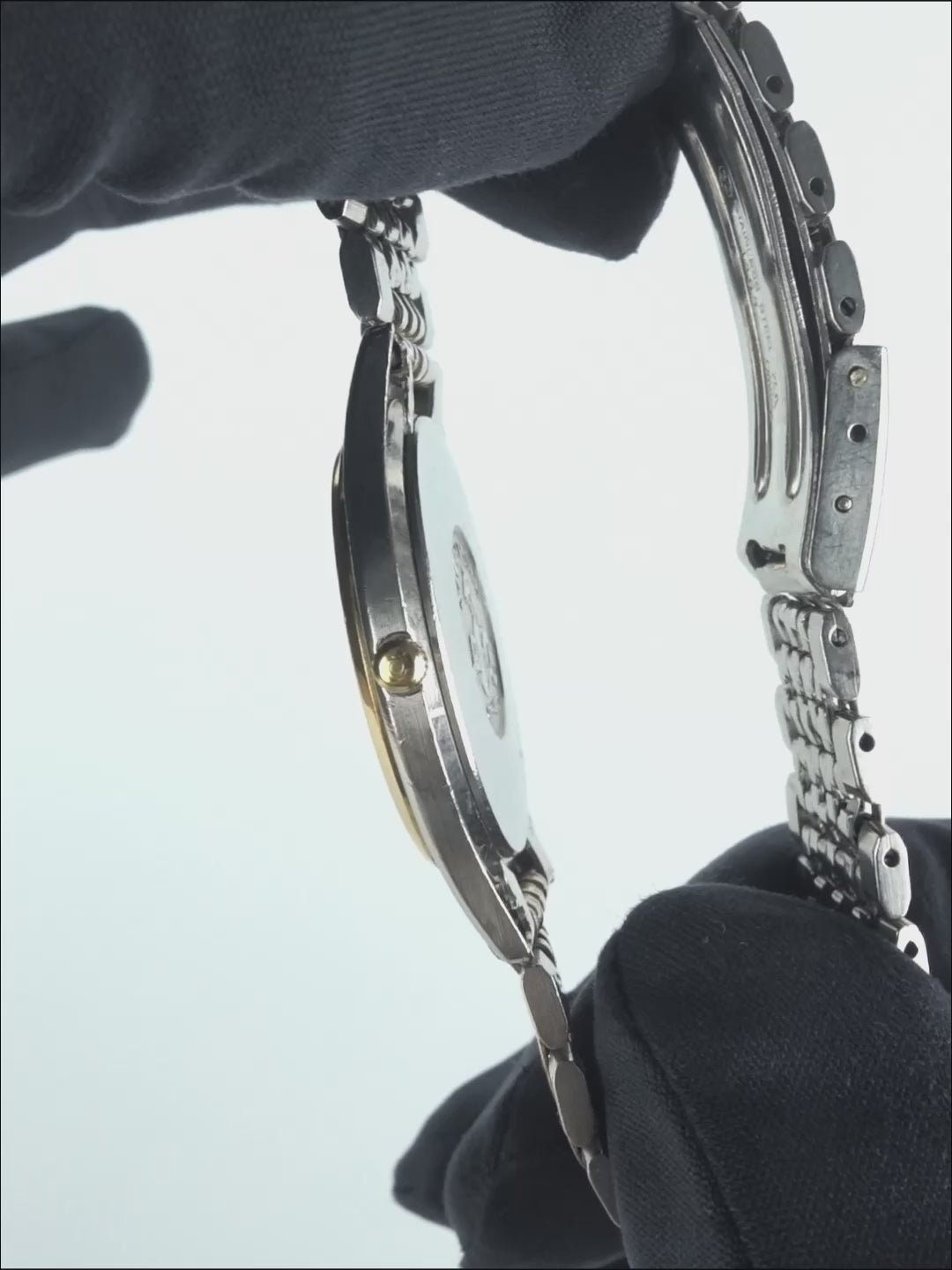 Inside is Omega’s reliable 1430 quartz movement, delivering precise and low maintenance performance consistent with the brand’s transition into high quality electronic watches during the era. With its two tone construction and crisp white dial, this Ref. 196.0251 is a charming example of early 80s Omega design and a great piece for collectors who appreciate subtle vintage elegance.