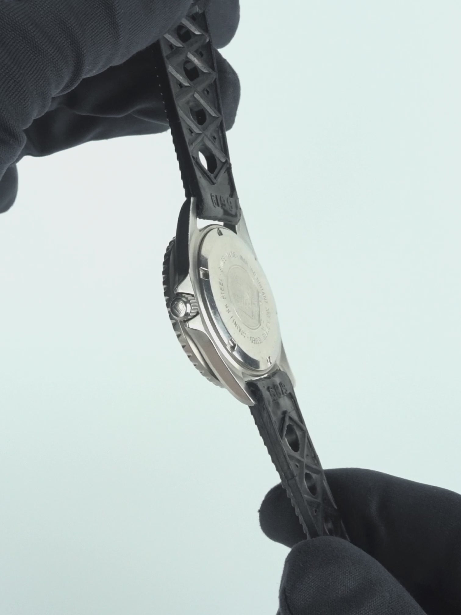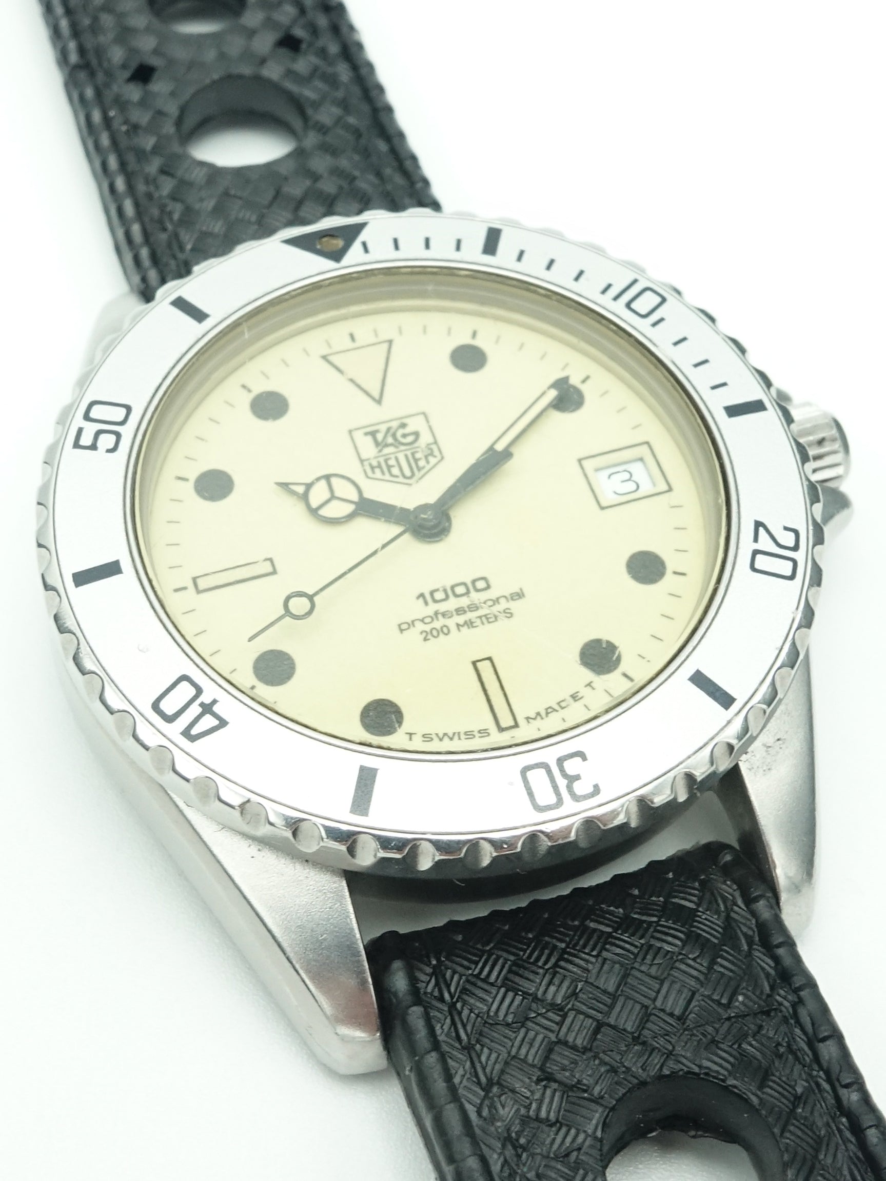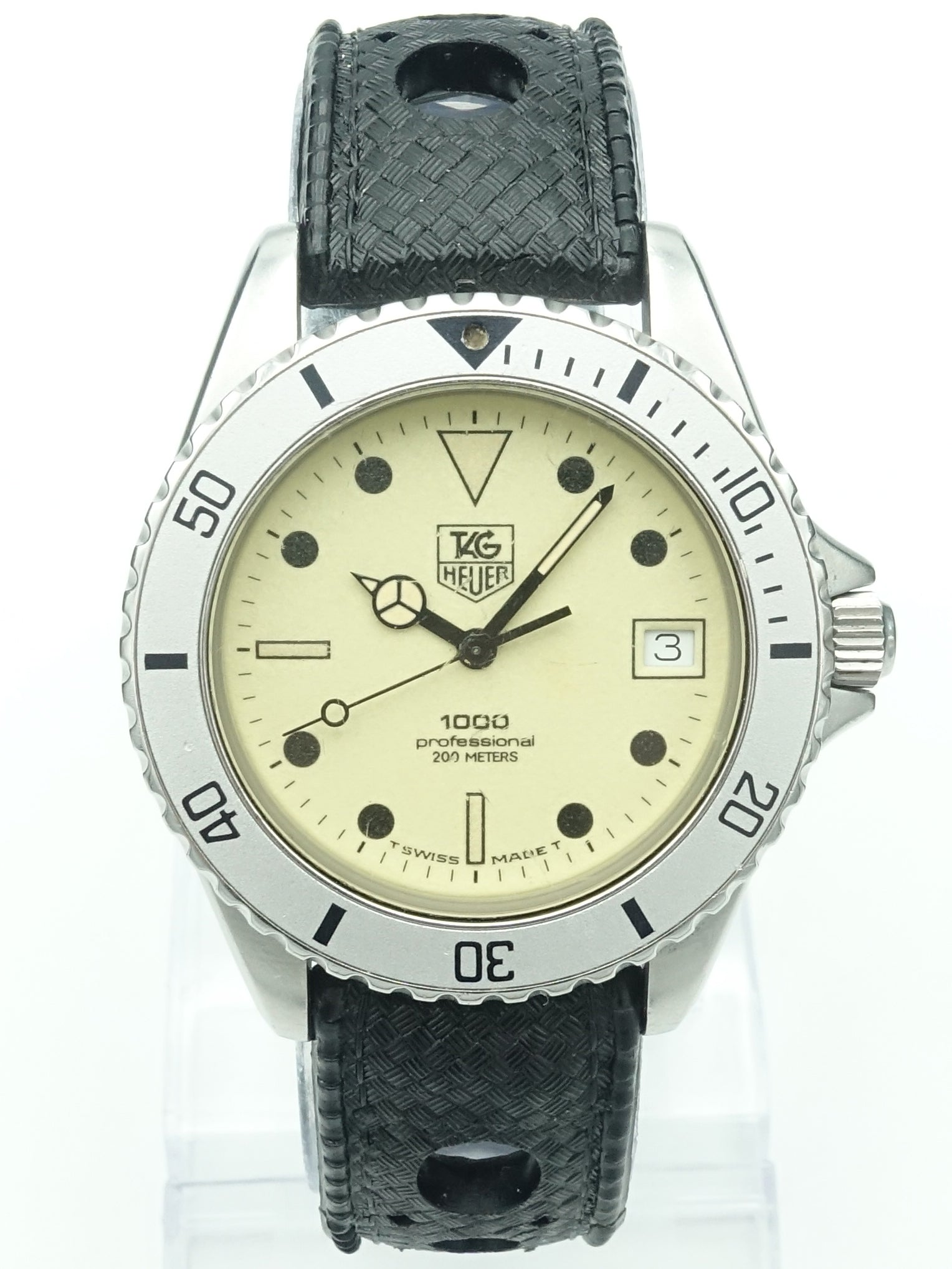 Fitted with a black rubber strap, this TAG Heuer 1000 offers both comfort and a cohesive aesthetic. Its water resistance of up to 200 meters further enhances its versatility, making it suitable for various activities.