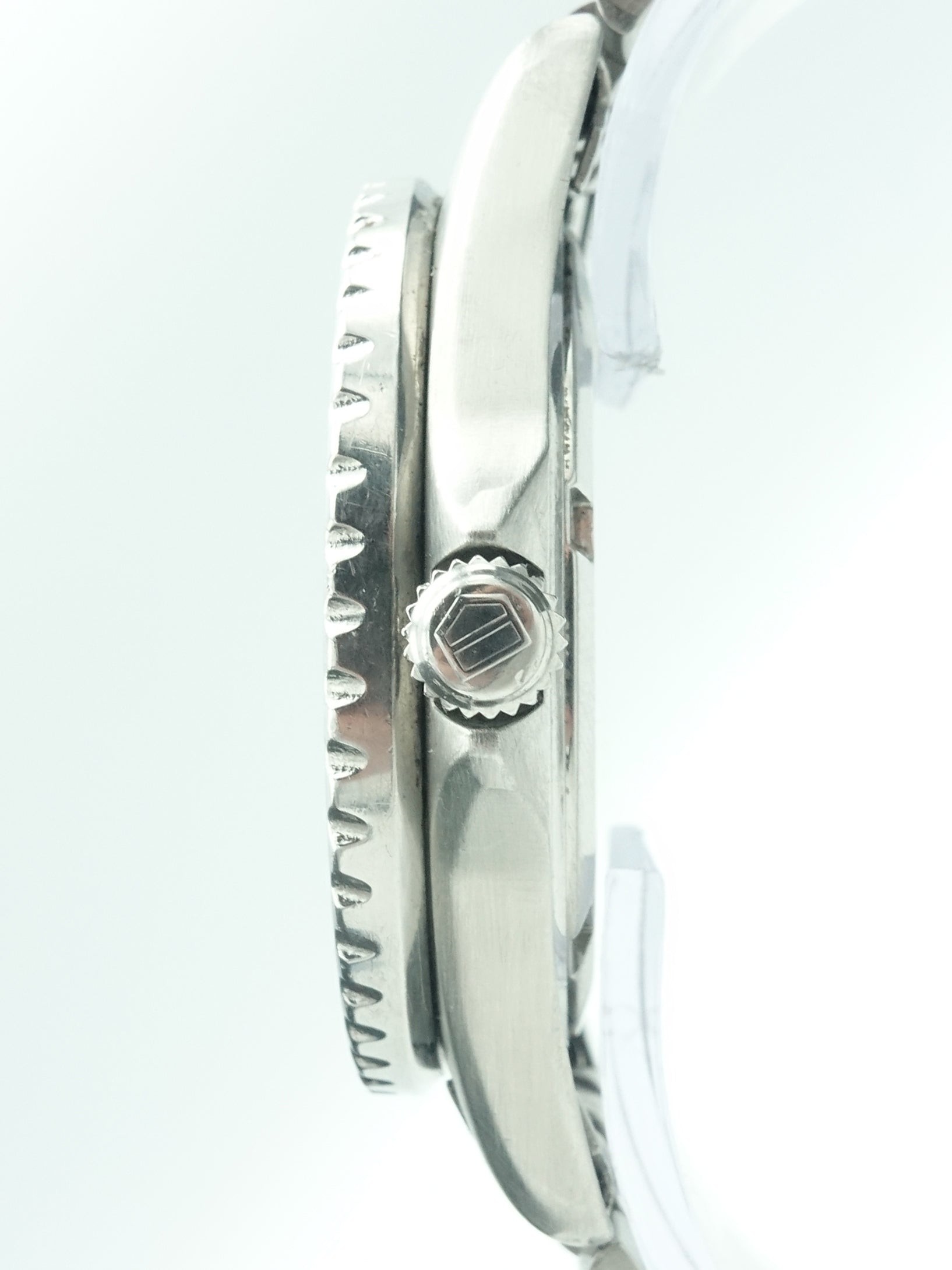 Fitted with a jubilee style stainless steel bracelet, the TAG Heuer 1000 Ref. 980.913N offers both comfort and a robust aesthetic. Its distinctive red sunburst dial not only enhances its visual appeal but also underscores its rarity, making it a prized addition to any watch collection.