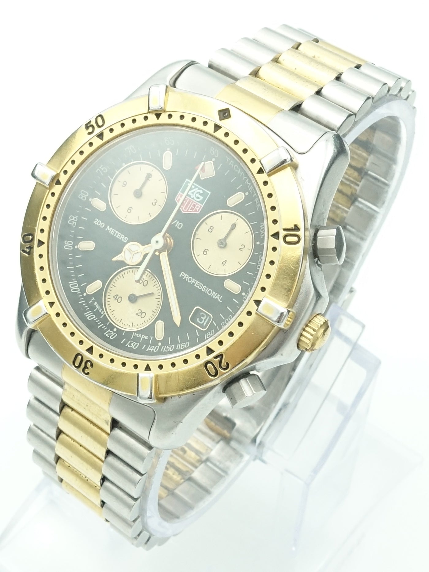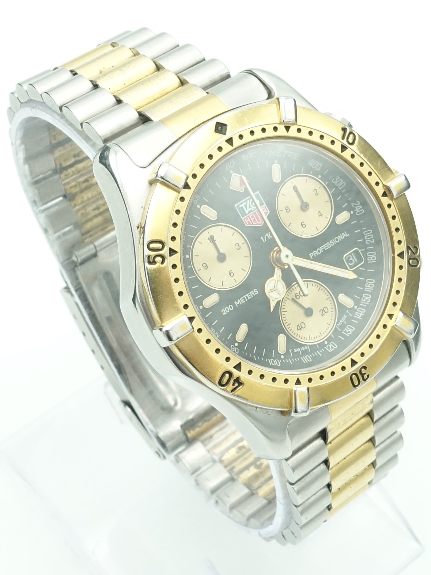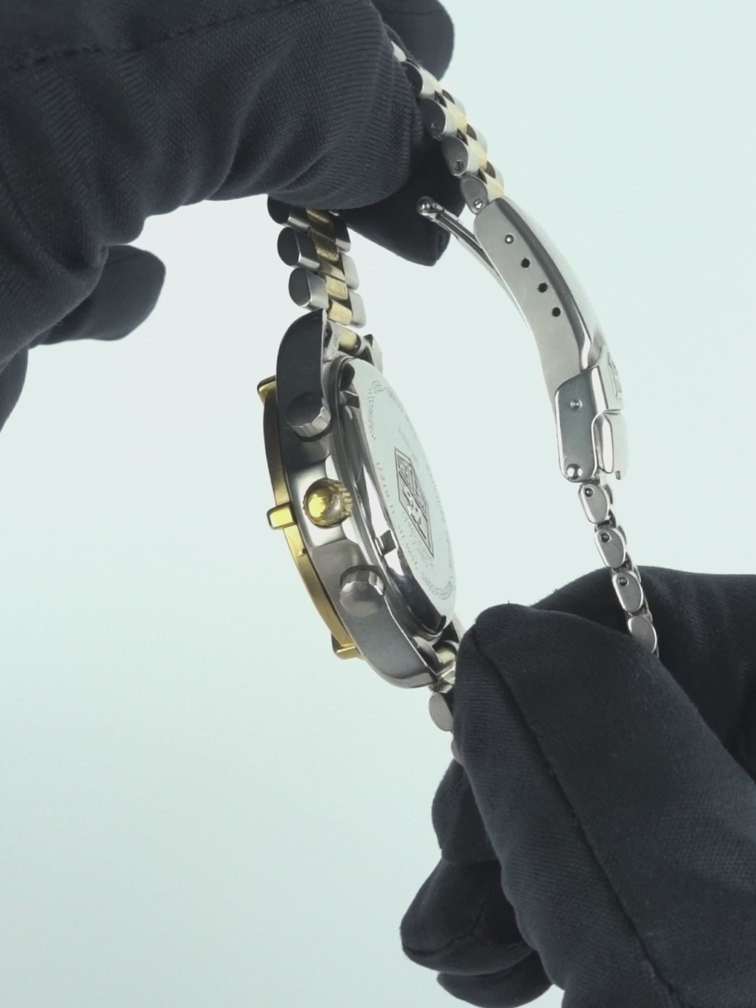 Fitted with a two-tone bracelet that matches the case, this TAG Heuer 2000 offers both comfort and a cohesive aesthetic. Its water resistance of up to 200 meters enhances its versatility, making it suitable for various activities.