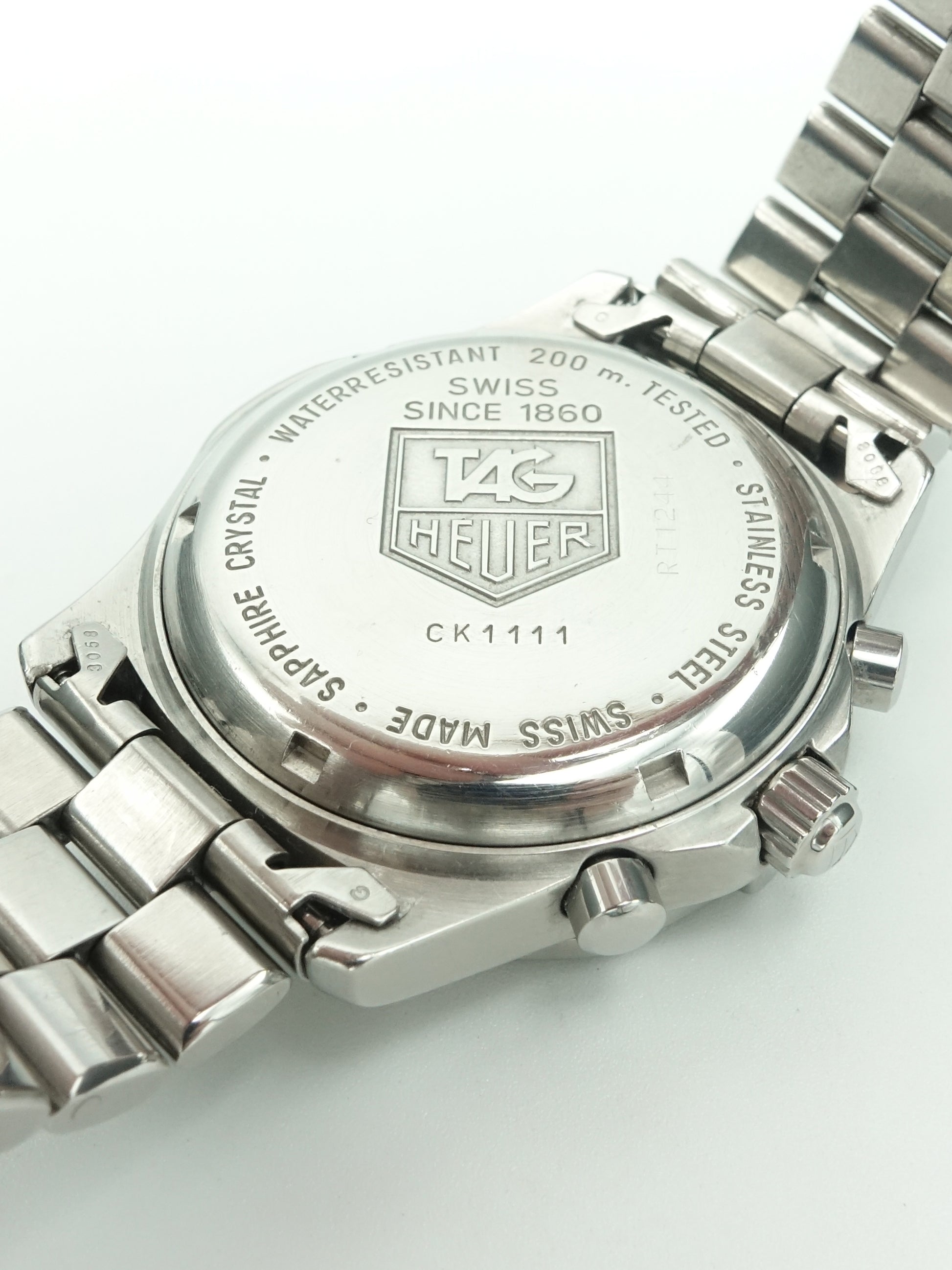 Powering the watch is a reliable quartz movement, delivering accurate and low maintenance performance. The Ref. CK1111 remains a well regarded model within the Tag Heuer 2000 range, offering a combination of durability, clean design, and everyday functionality that continues to appeal to collectors and enthusiasts alike.