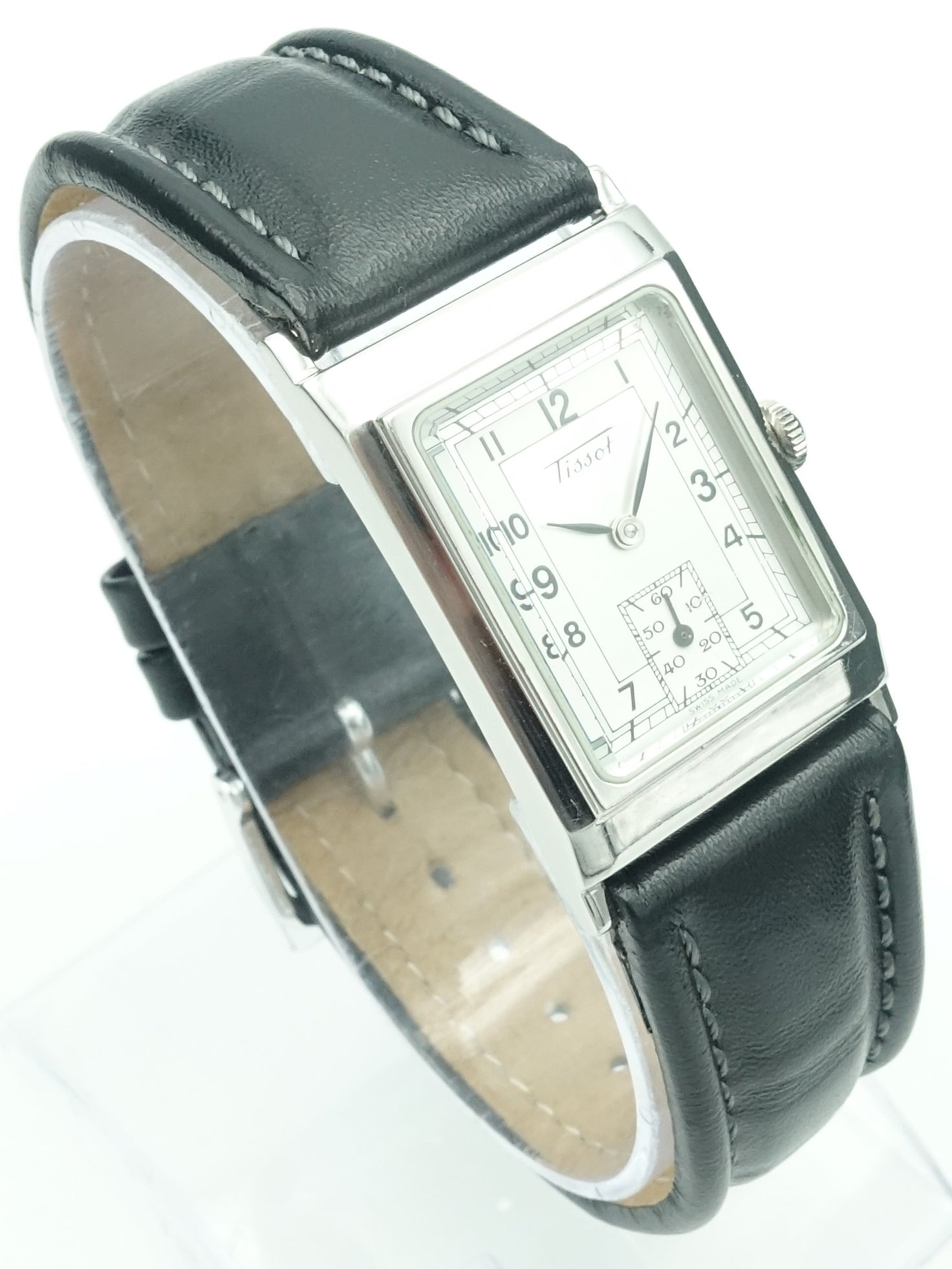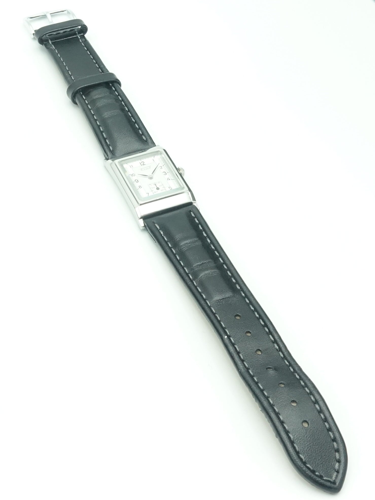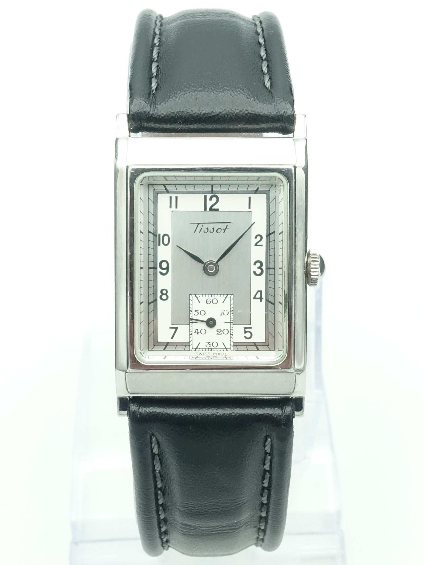 Introducing the 1995 Tissot Heritage Tank Ref. Z173K. A distinguished timepiece that pays homage to the elegance of the Art Deco era. This model features a striking rectangular curved stainless steel case that frames a beautifully detailed silver dial with black numerals and a small seconds sub-dial. The intricate geometric patterns on the dial reflect the distinctive Art Deco style, fitted on a high quality Hirsch leather strap. Perfect for those who appreciate vintage-inspired designs with modern reliability, this timepiece is both a fashion statement and a functional timepiece.