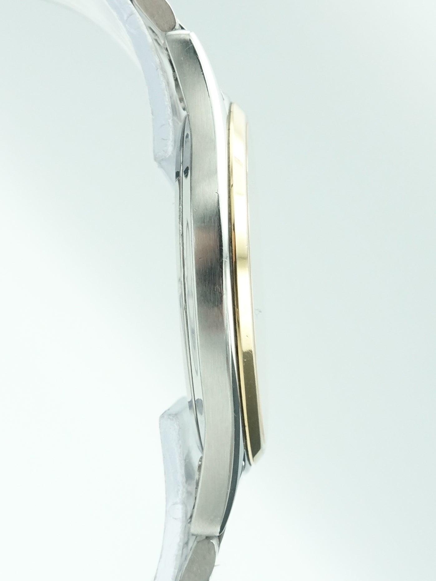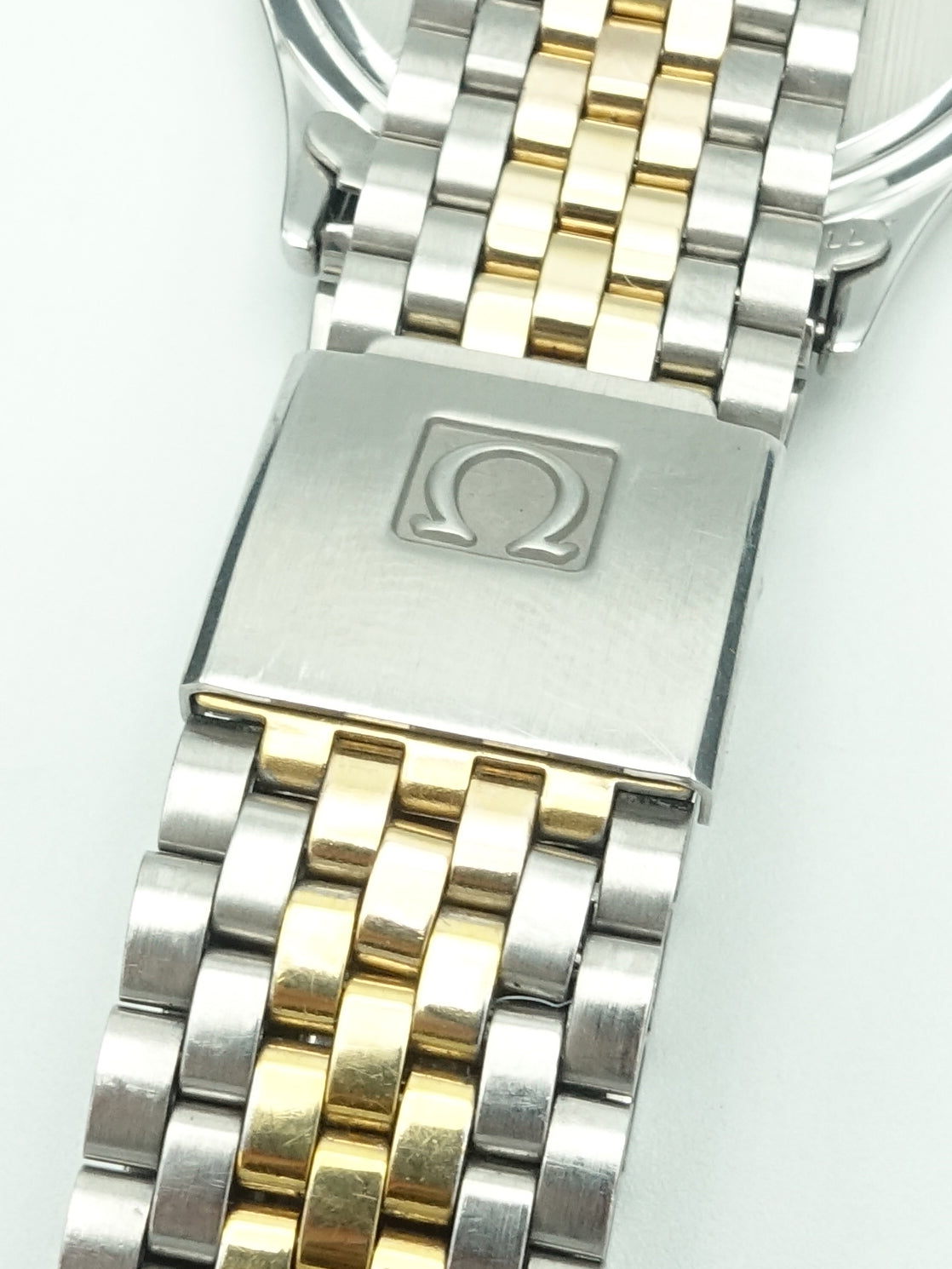 A dressier reference from Omega's flagship ‘Seamaster’ collection. This example has a stunning two tone gold/silver colour way with a beautiful white dial that needs to be seen in person to be truly appreciated. It also has its original Omega ‘beads of rice’ style bracelet which is iconic of its era. At only 5mm thick, it's perfect to slip under a shirt cuff for a classy look. The calibre 1430 movement features a date complication and as with any Swiss quartz movement it’s extremely accurate and reliable.