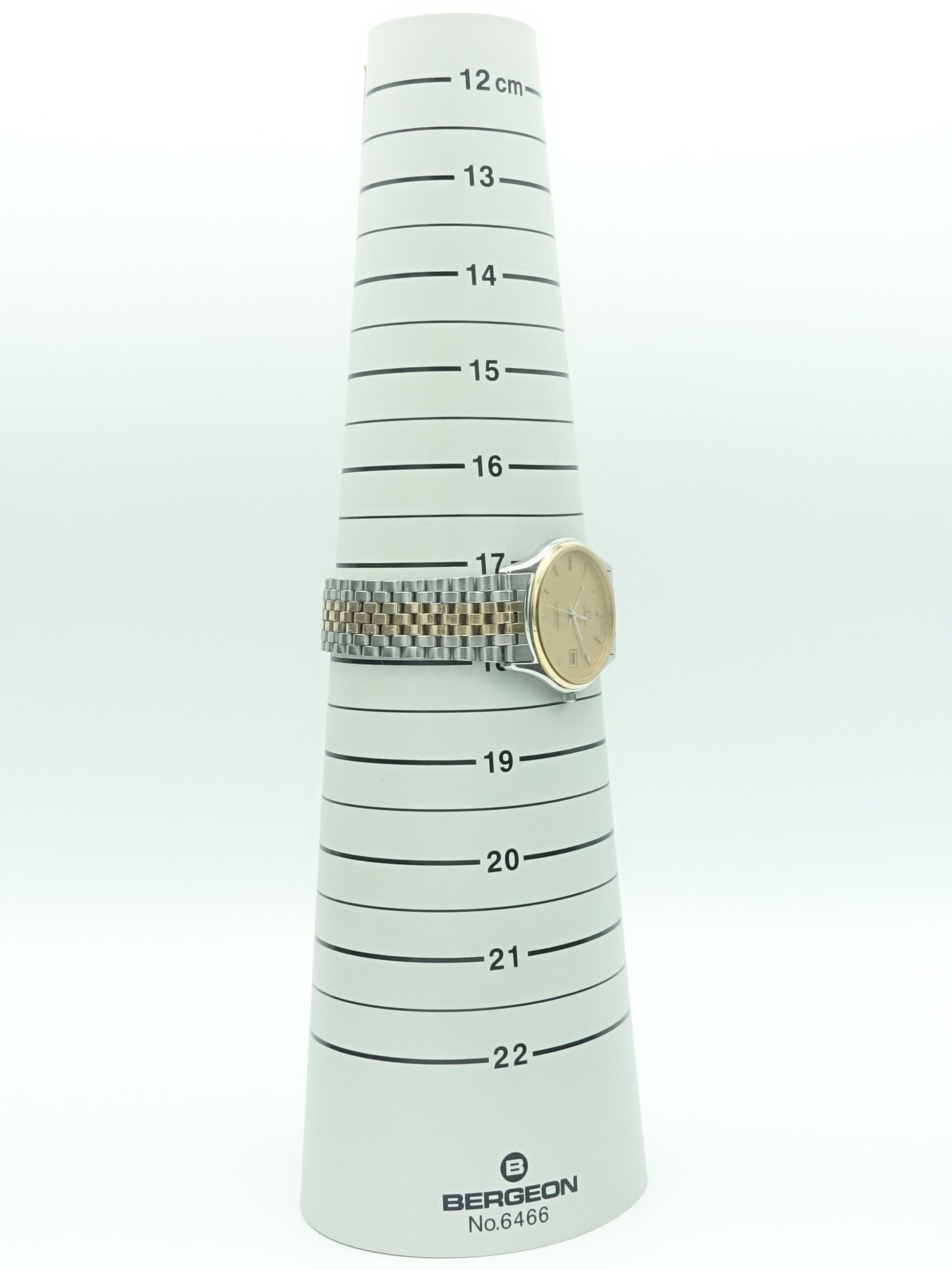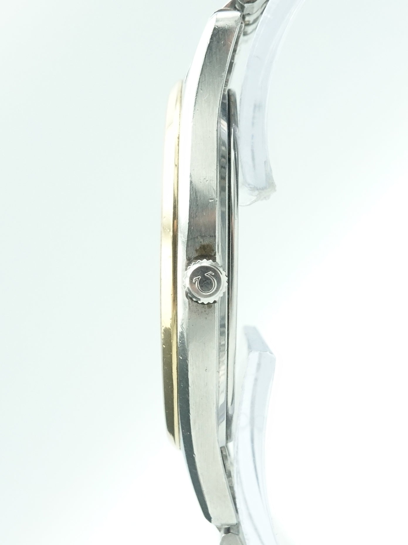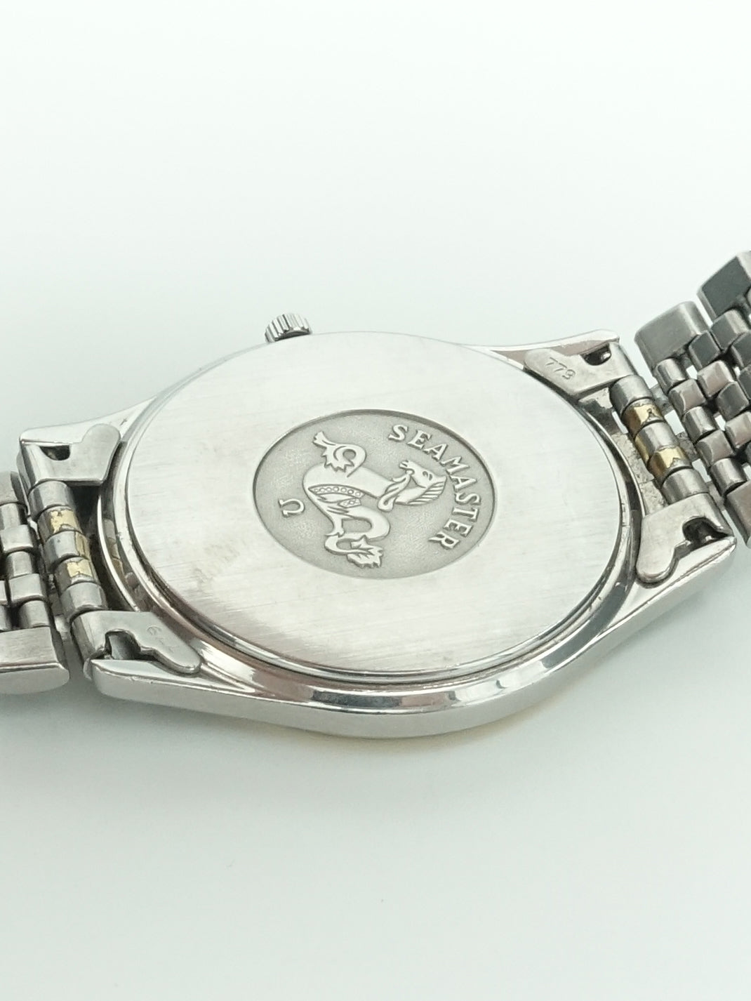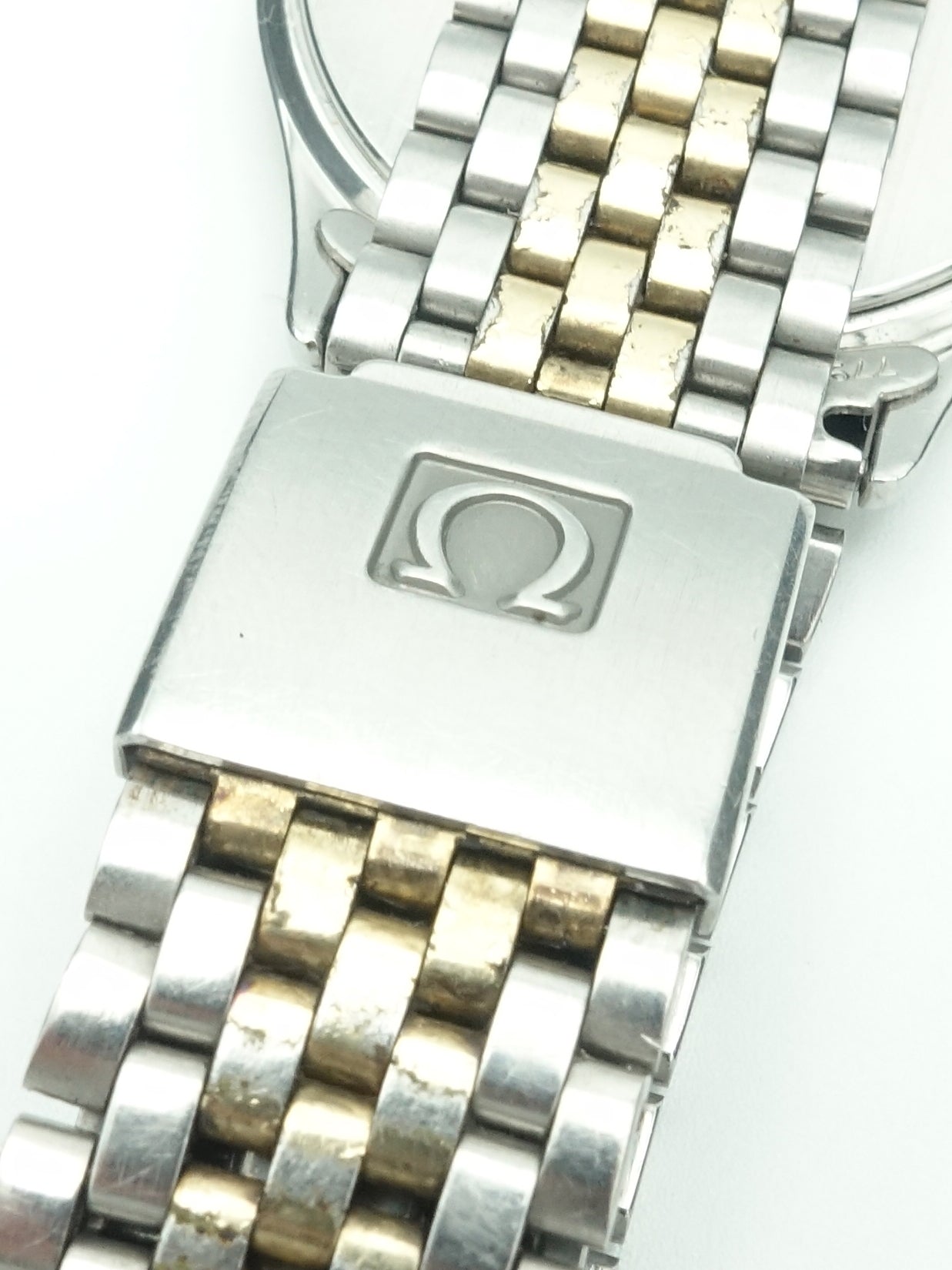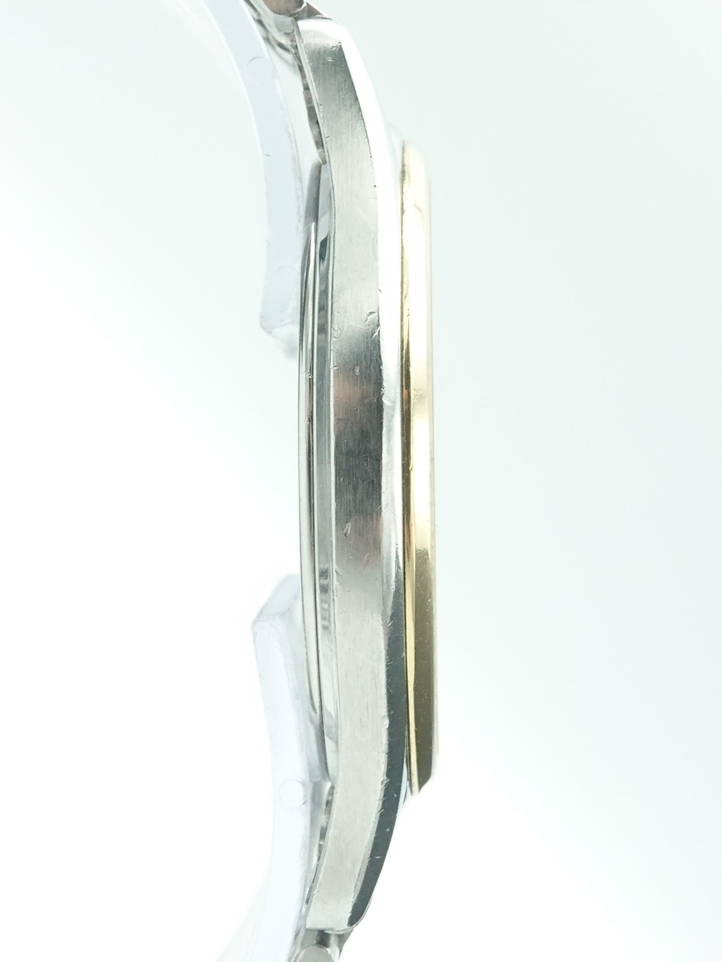 A dressier reference from Omega's flagship ‘Seamaster’ collection. This example has a stunning gold and silver colour way with a beautiful textured dial that needs to be seen in person to be truly appreciated. It also has its original Omega ‘jubilee’ style bracelet which is iconic of its era. At only 5mm thick, it's perfect to slip under a shirt cuff for a classy look. The calibre 1430 movement features a date complication and as with any Swiss quartz movement it’s extremely accurate and reliable.