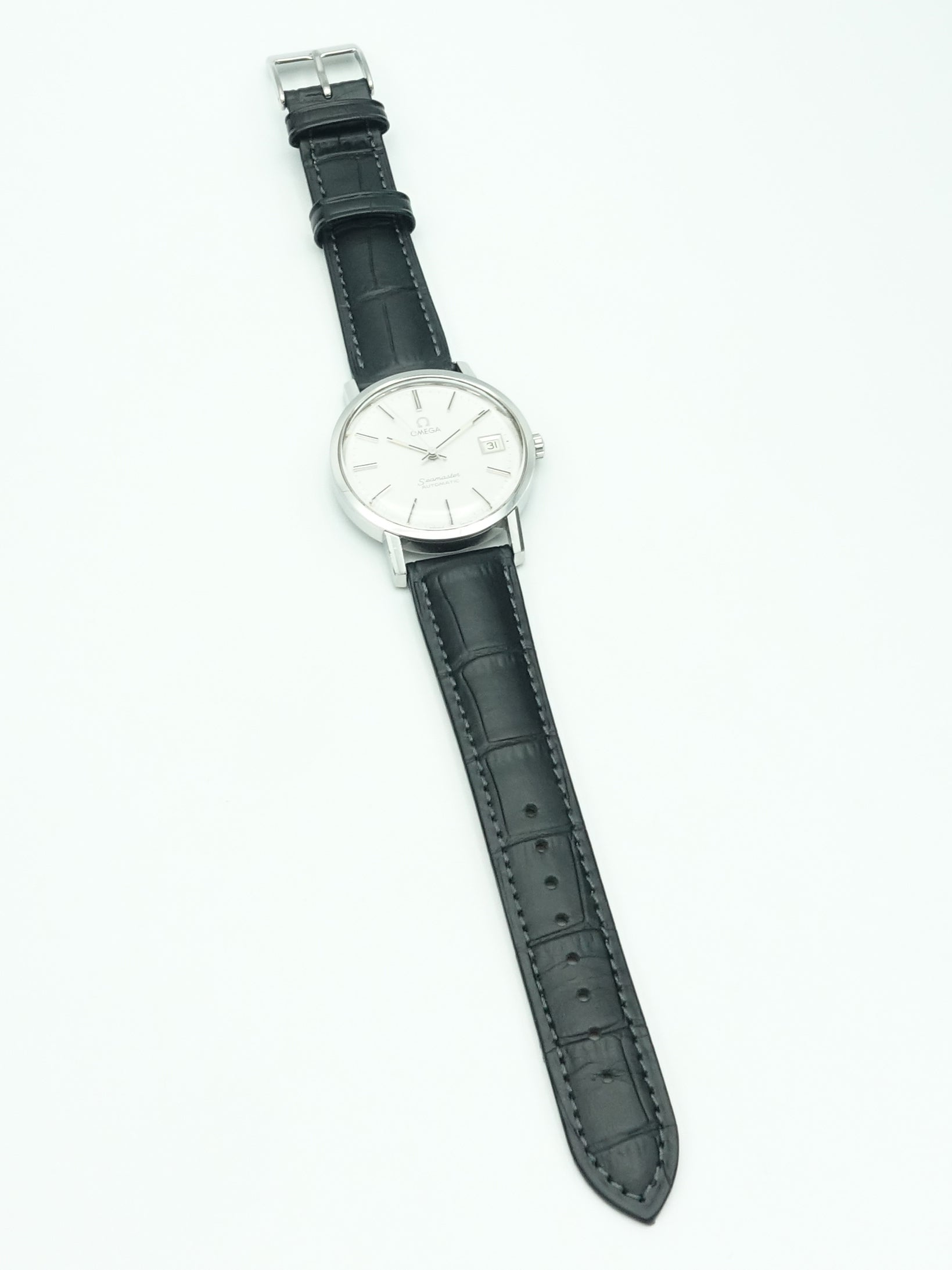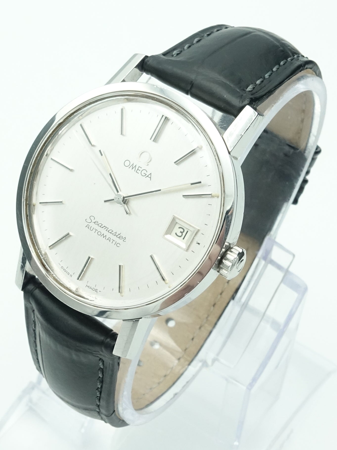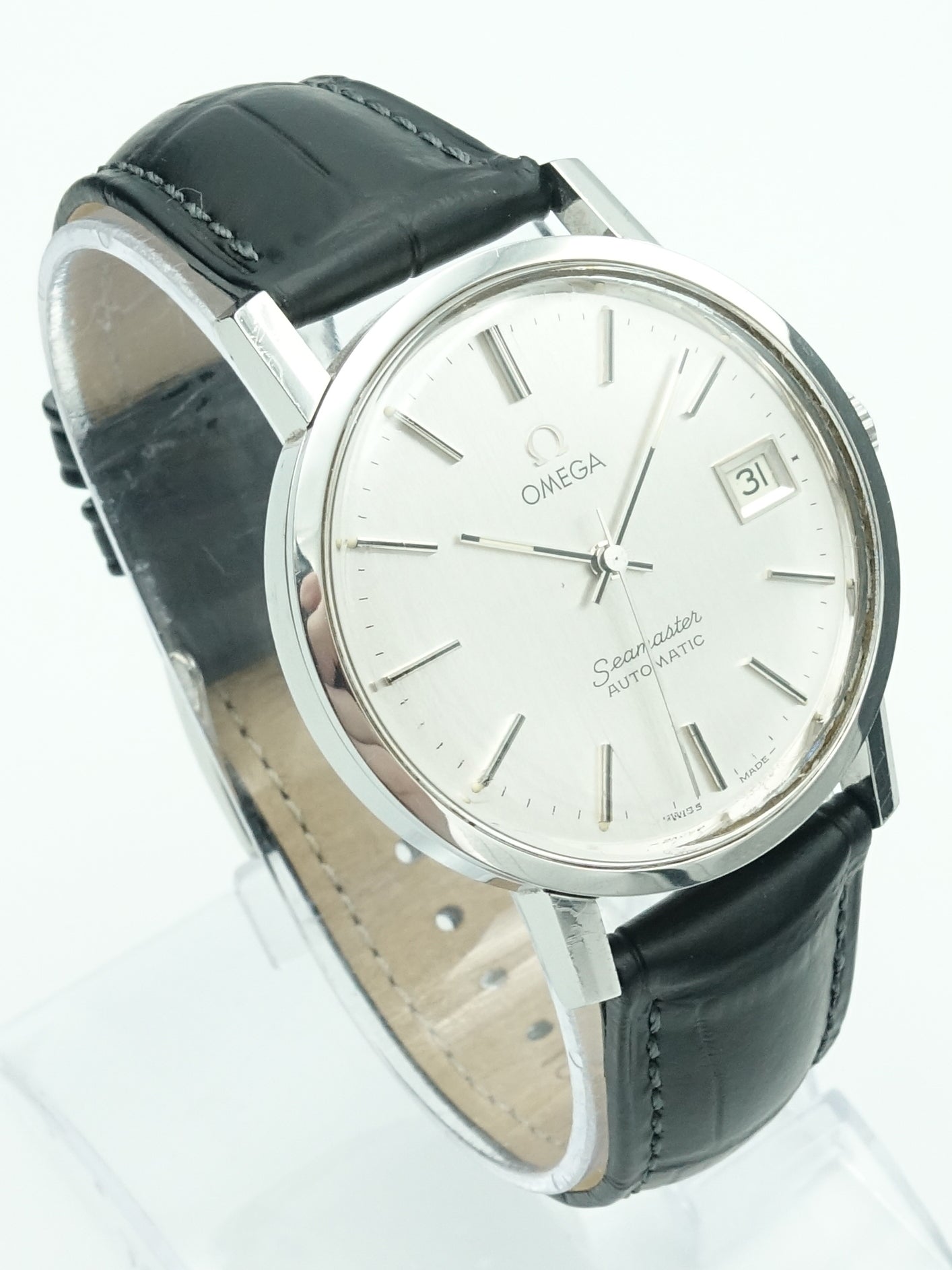 A dressier reference from Omega's flagship ‘Seamaster’ collection. This example has a stunning brushed silver dial. It really needs to be seen in person to be truly appreciated. The calibre 1012 movement features a date complication and as with any Swiss movement it’s extremely accurate and reliable. It's fitted on a high quality Hirsch strap which suits the watch well.